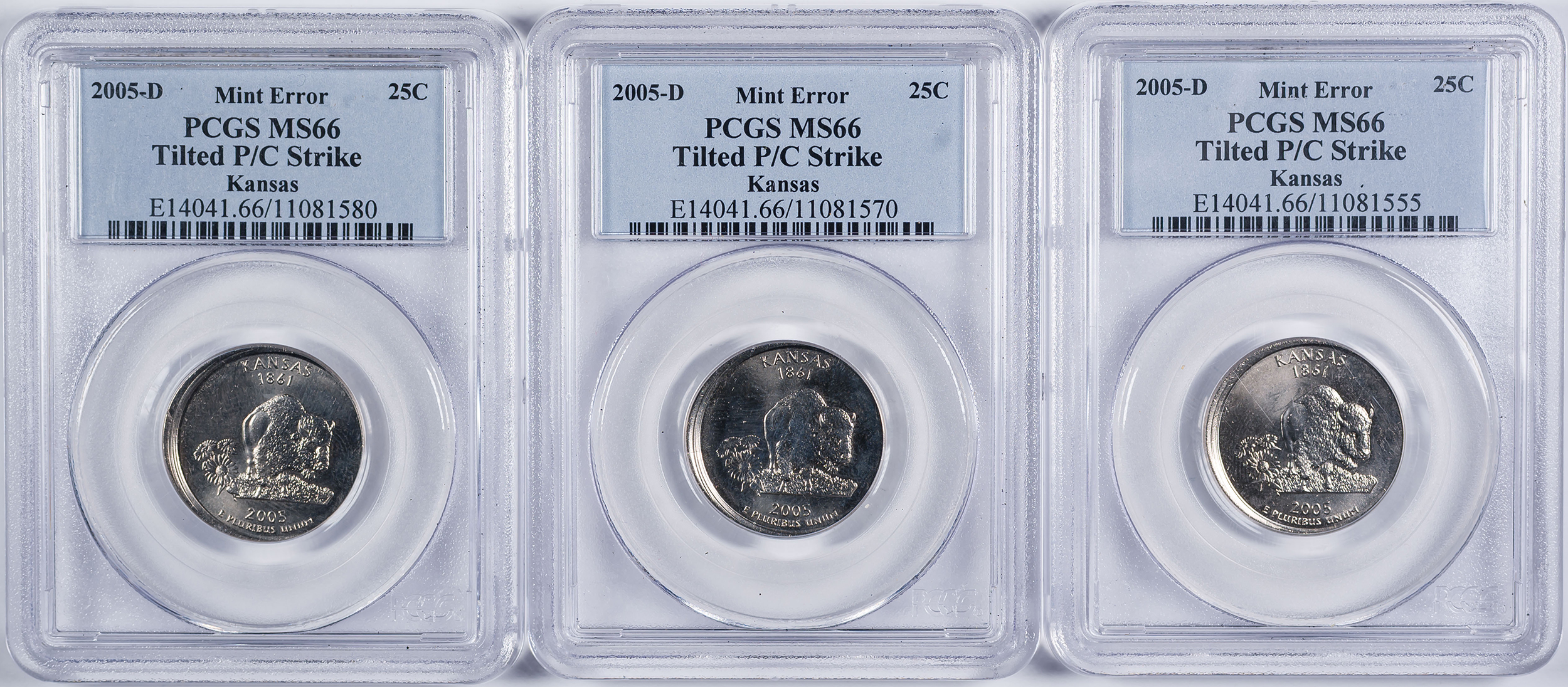 PCGS MS-66 2005-D Kansas Error Trio