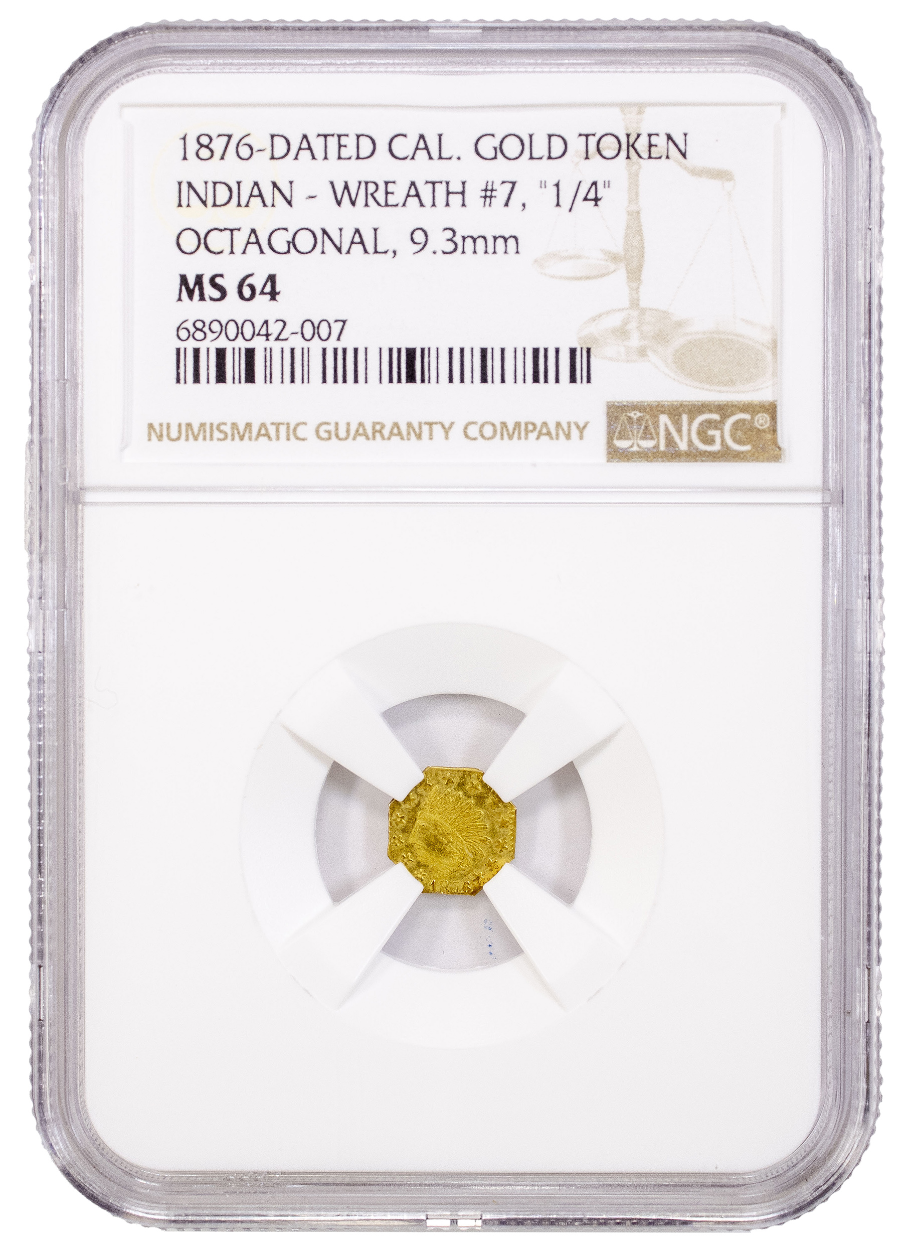 NGC MS-64 1876 Gold California Token