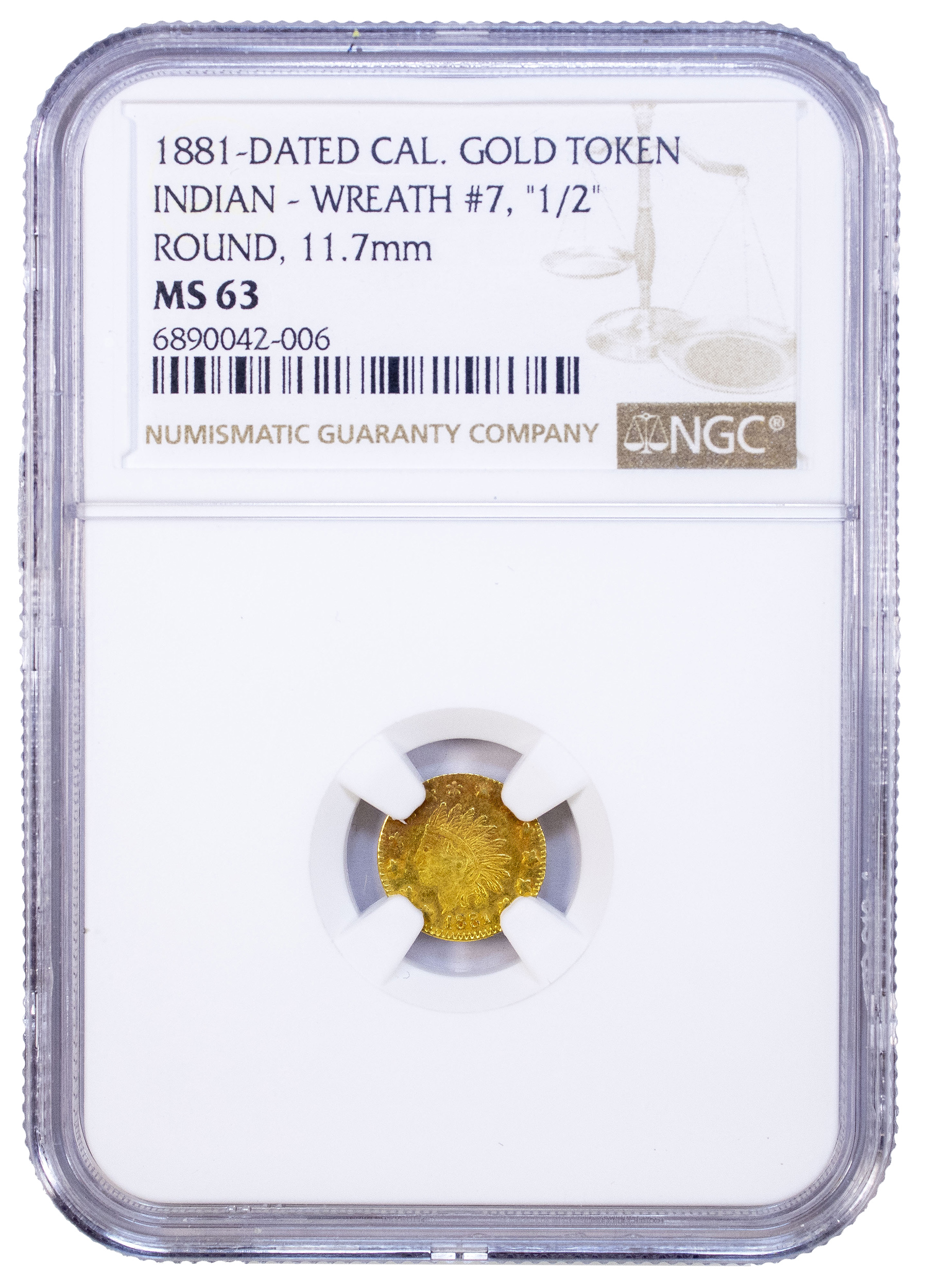 NGC MS-63 1881 Gold California Token