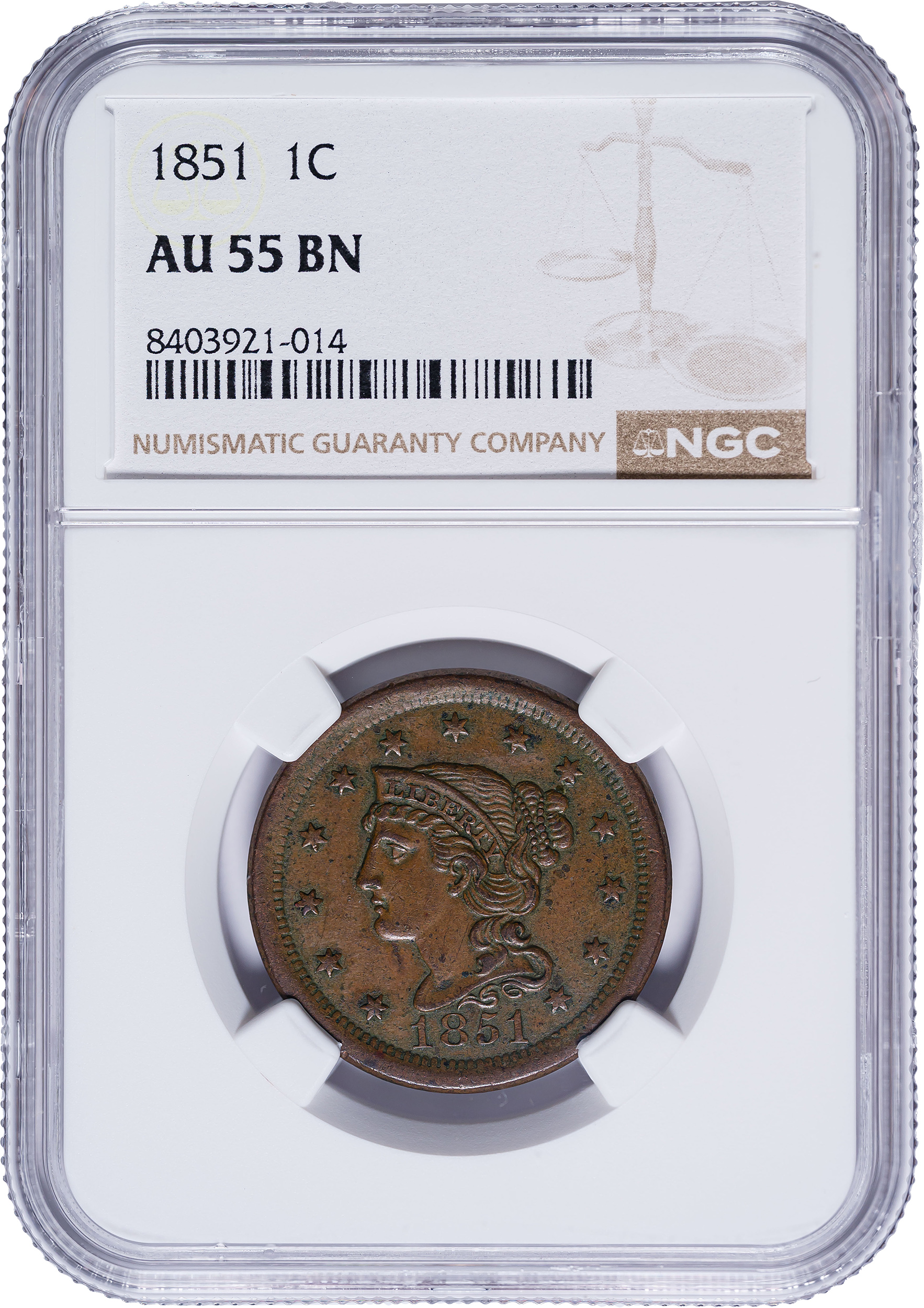 NGC AU-55 1851 Large Cent