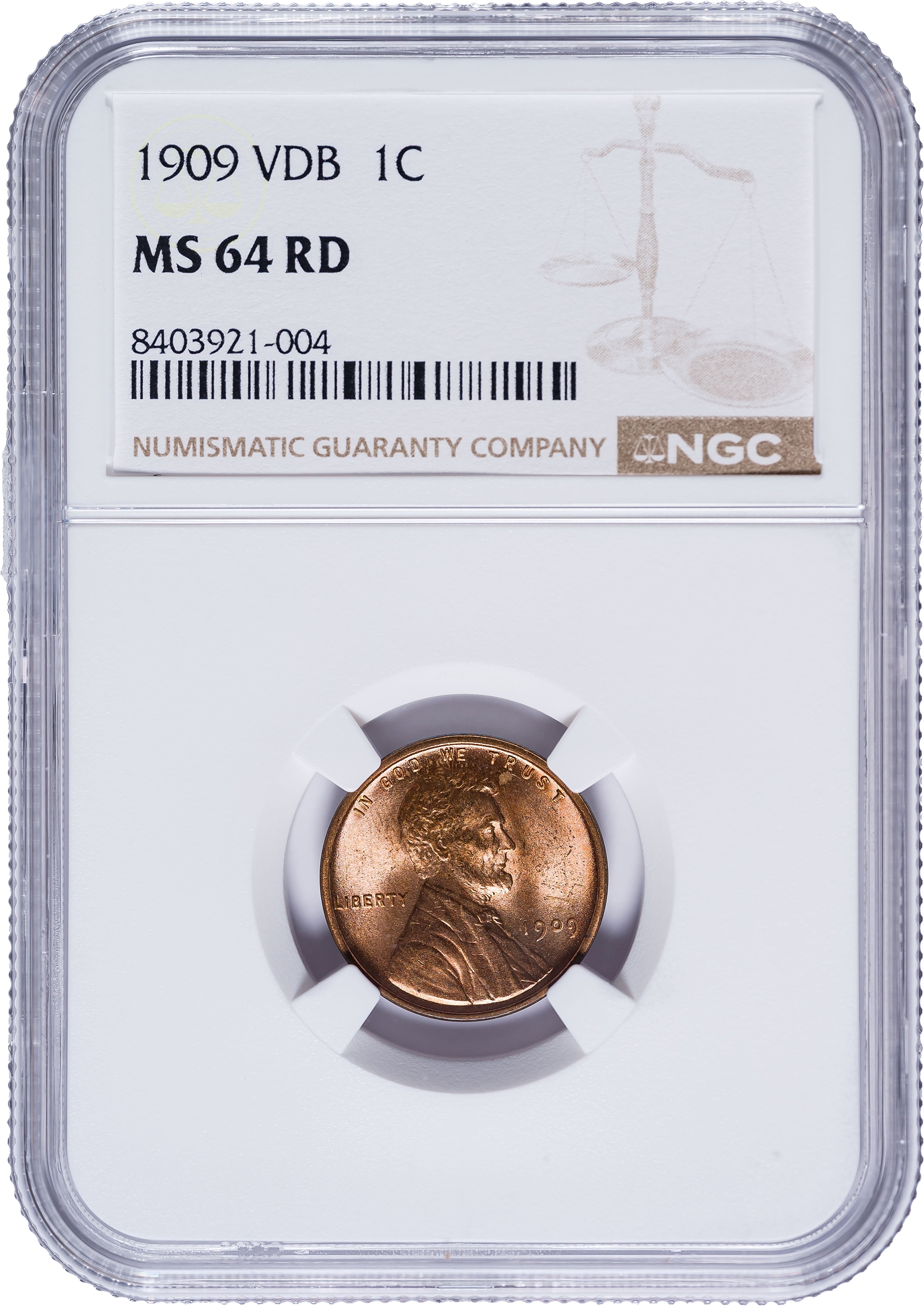 NGC MS-64 RD 1909 V.D.B. Lincoln Cent