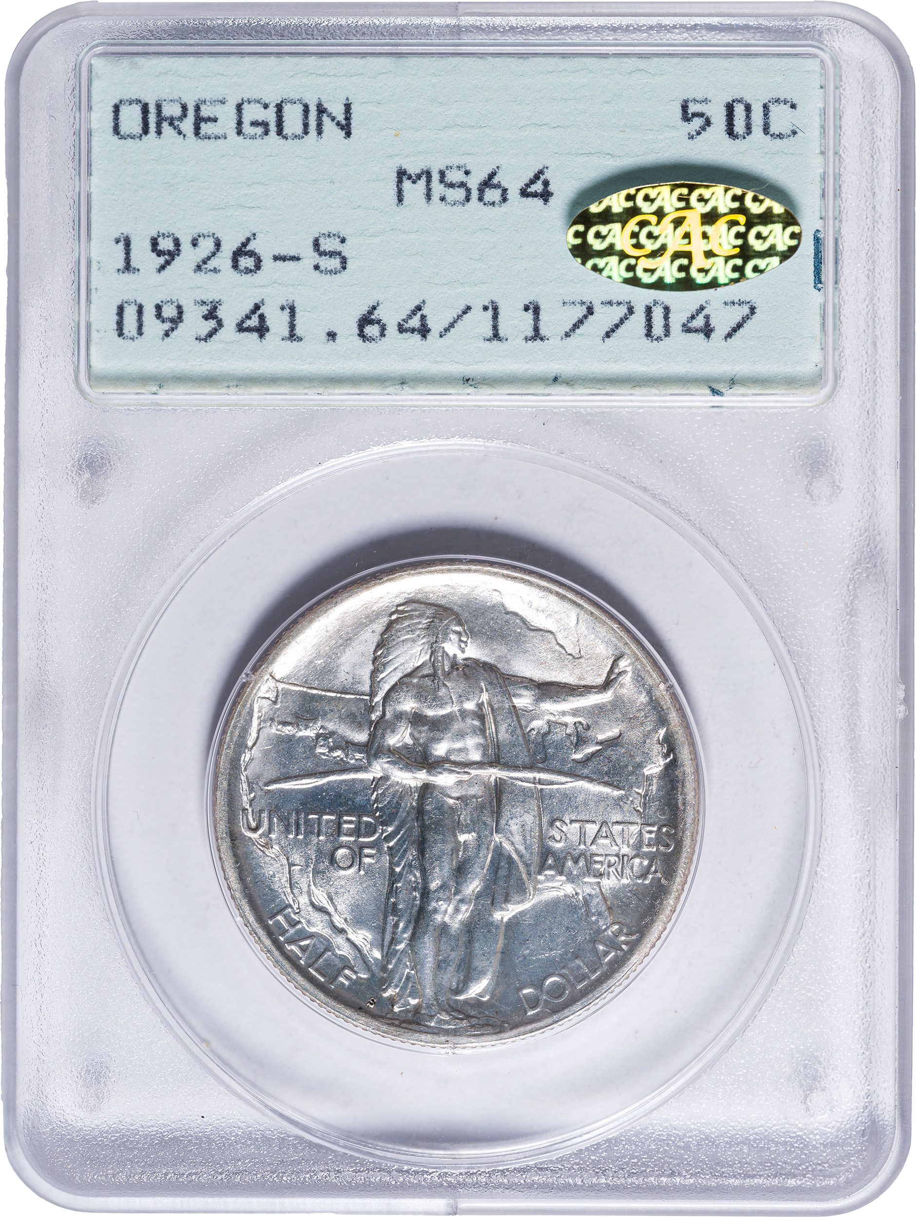 PCGS MS-64 Gold CAC 1926-S Oregon Half Dollar