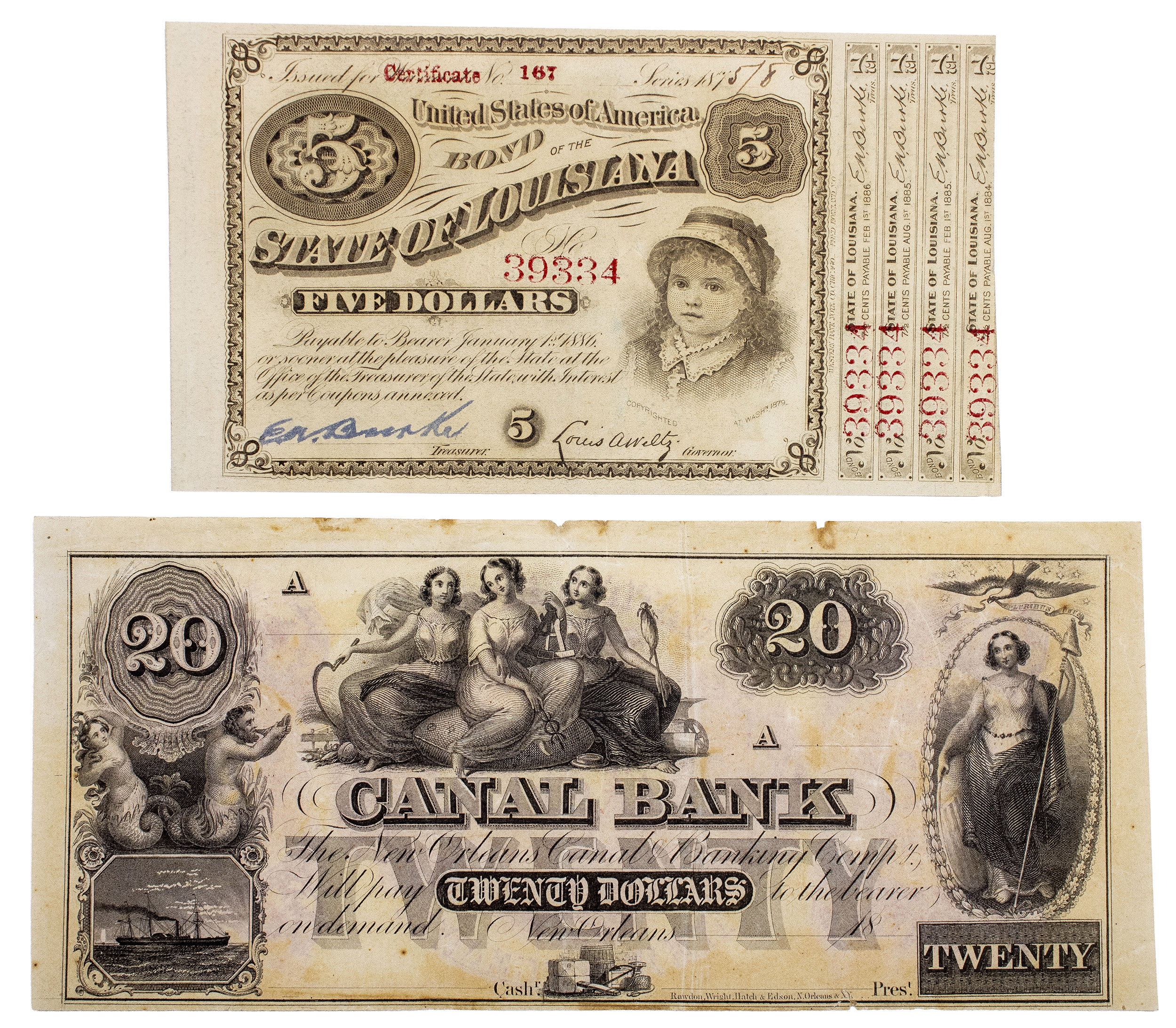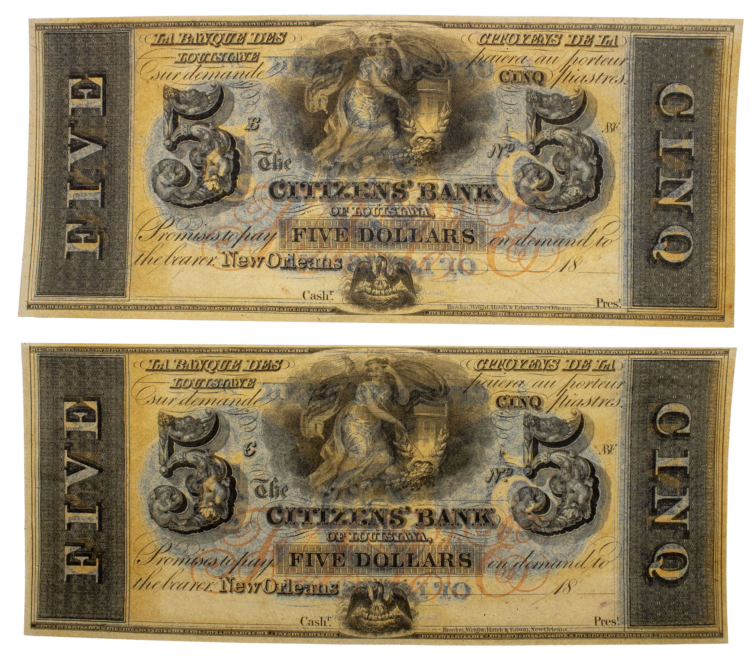 Louisiana. Pair of Crisp Remainder $5s
