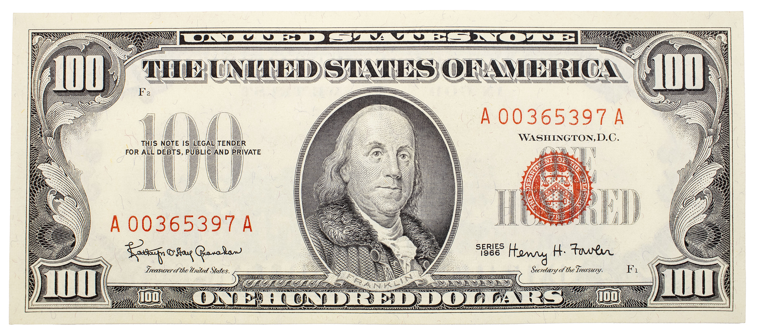 Choice UNC 1966 $100 U.S. Note