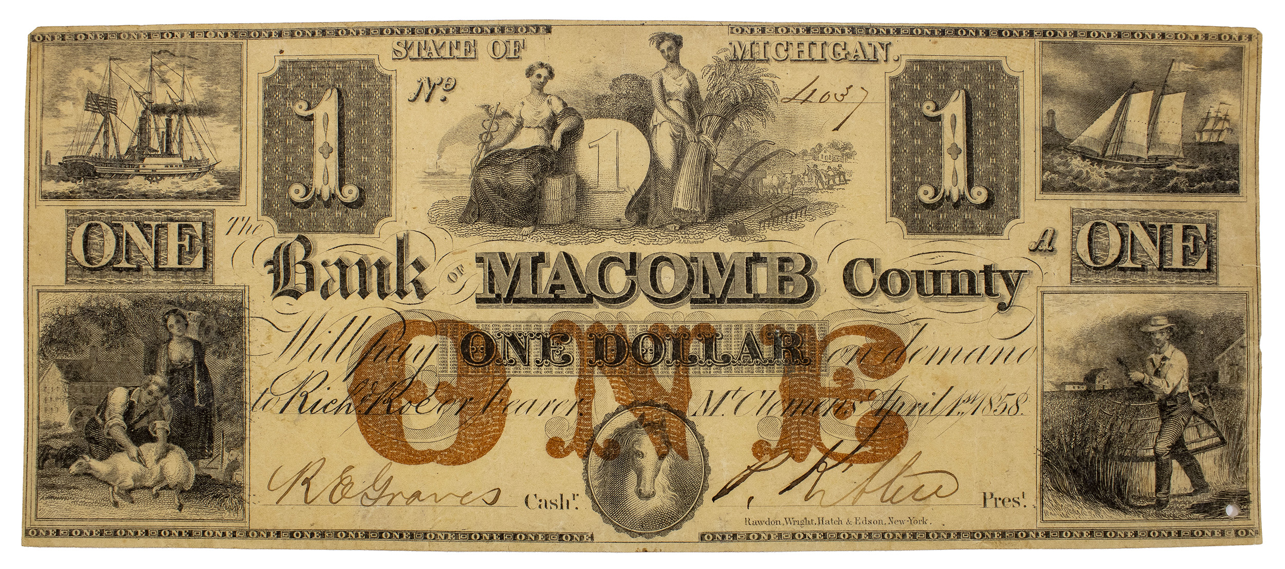 Michigan. VF or finer 1858 $1 Note