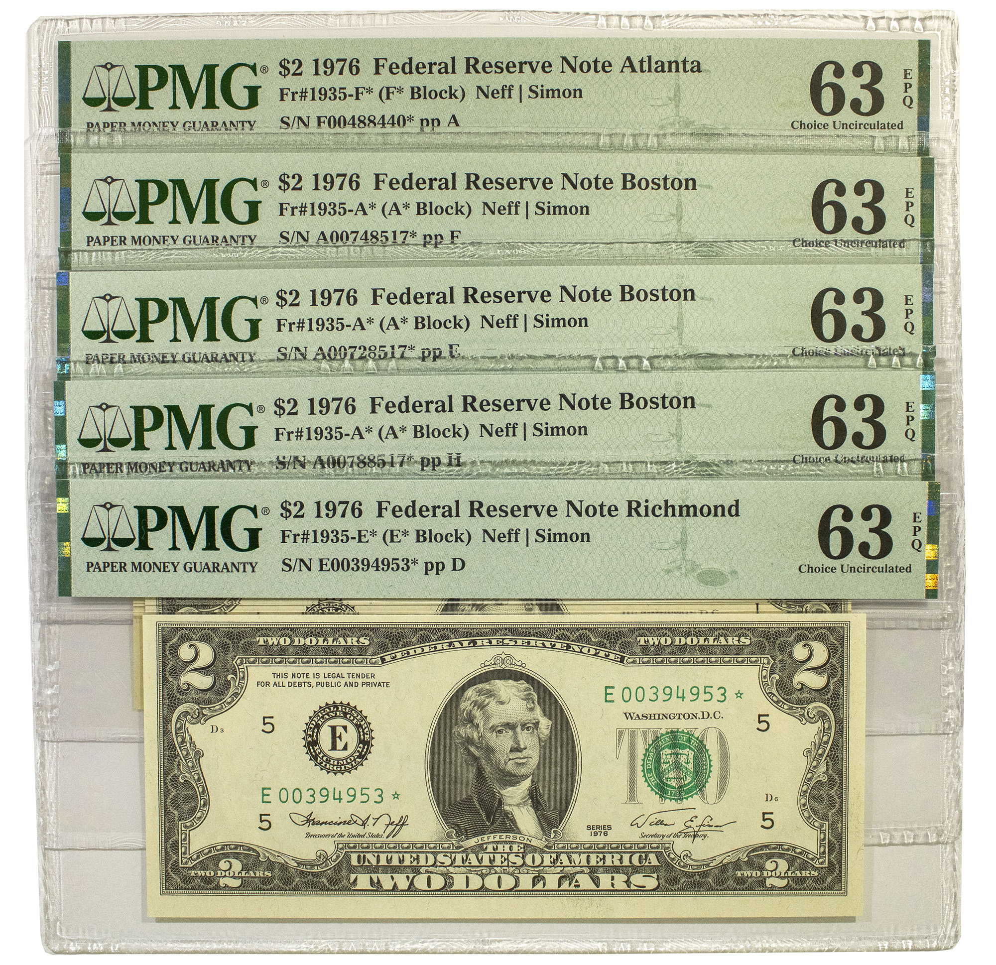 Five Crisp New PMG 1976 $2 Star Notes