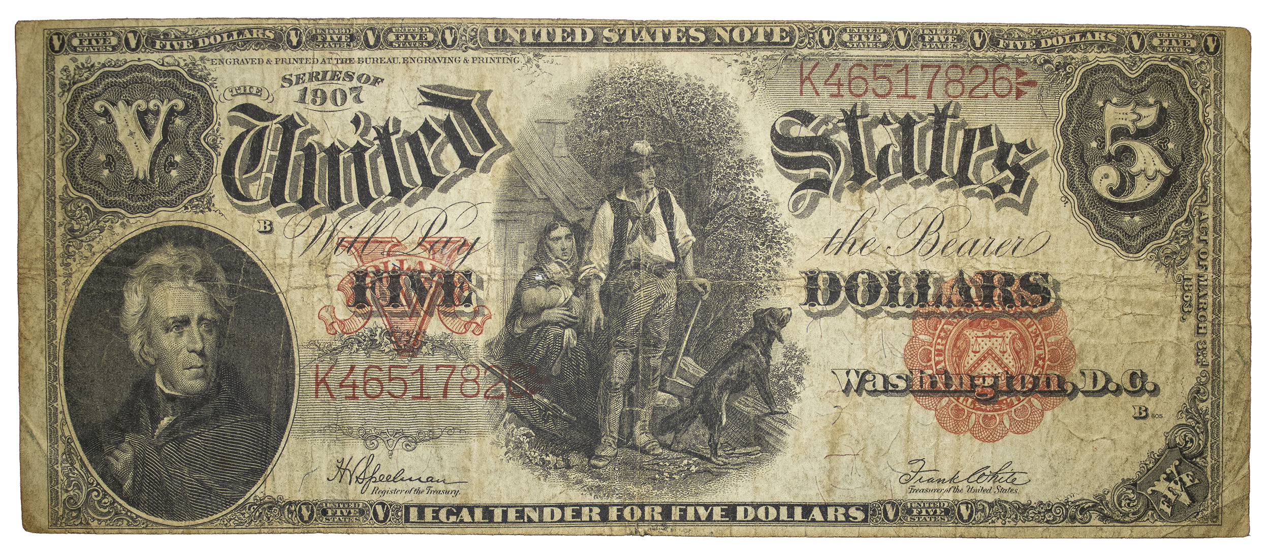 Fine to VF 1907 $5 Woodchopper Note