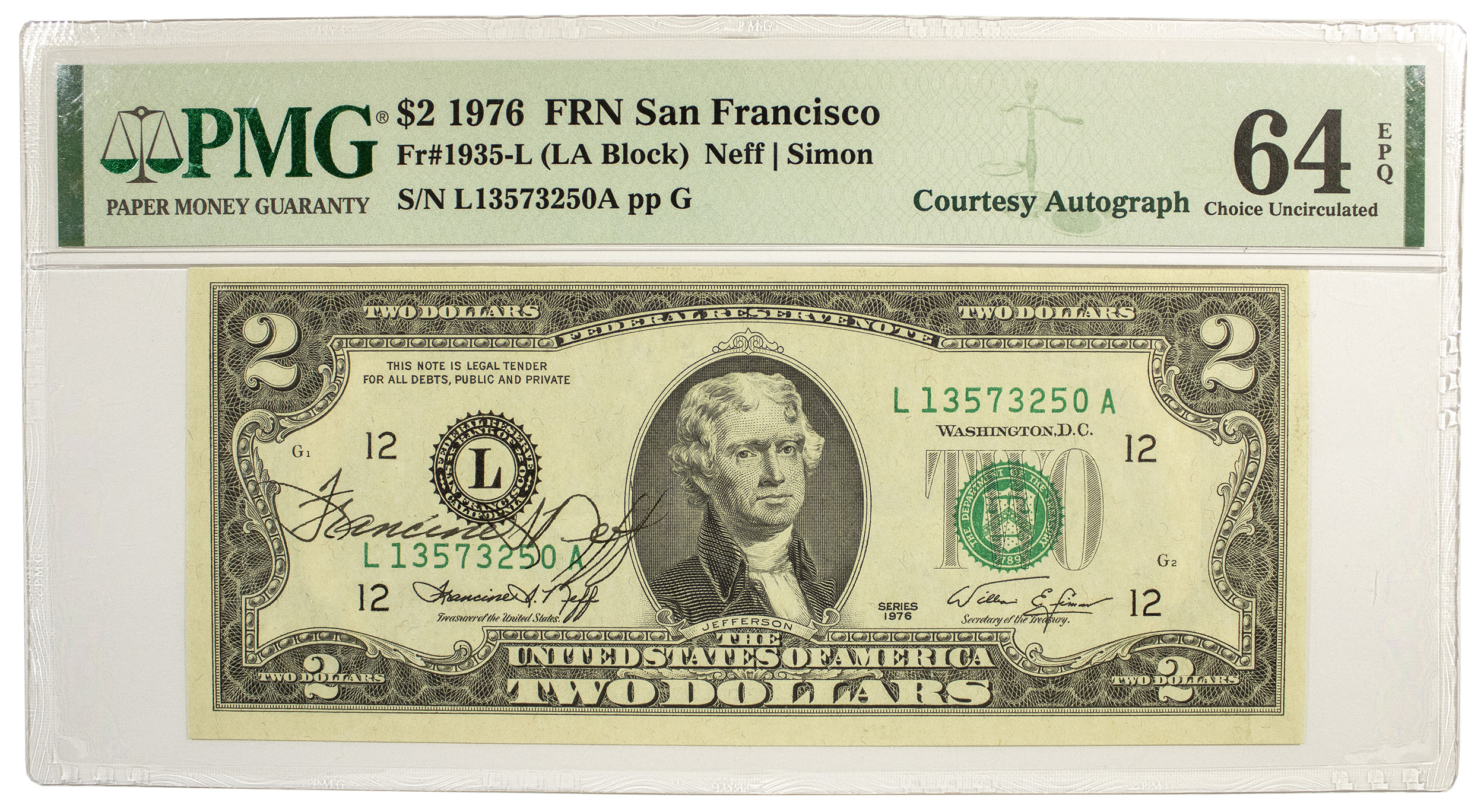 PMG Choice-64 1976 Courtesy Signed $2
