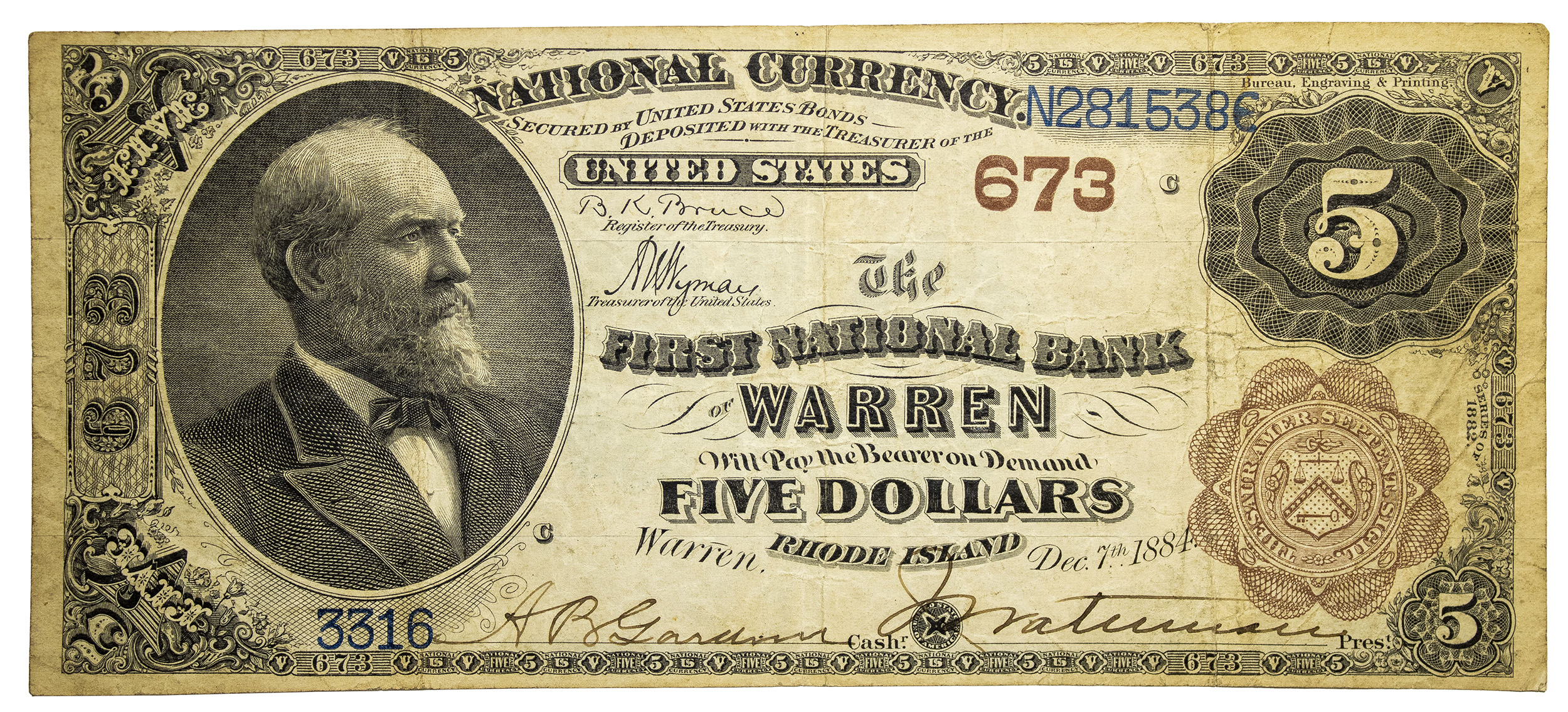 Rhode Island. Warren. VF 1882 $5 Note Rarity