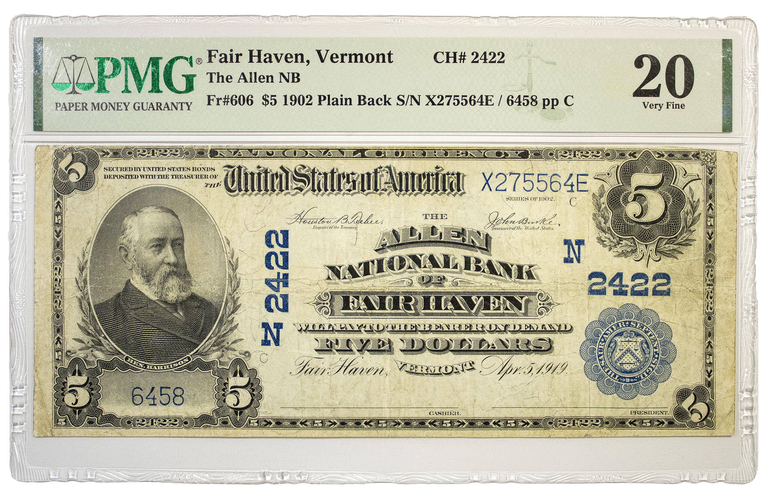 Vermont. Fairhaven. PMG VF-20 Series 1902 $5