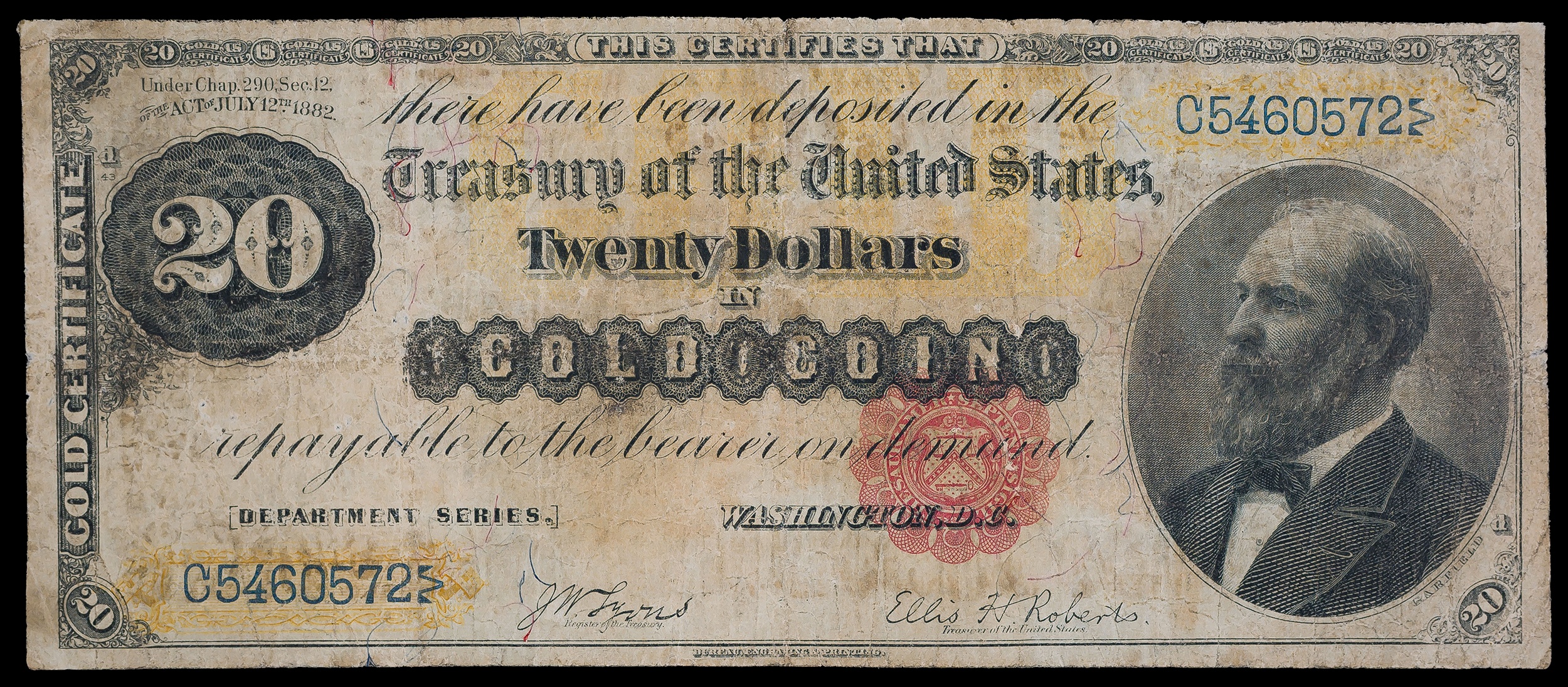 Fine+ Series 1882 $20 Gold Coin Note