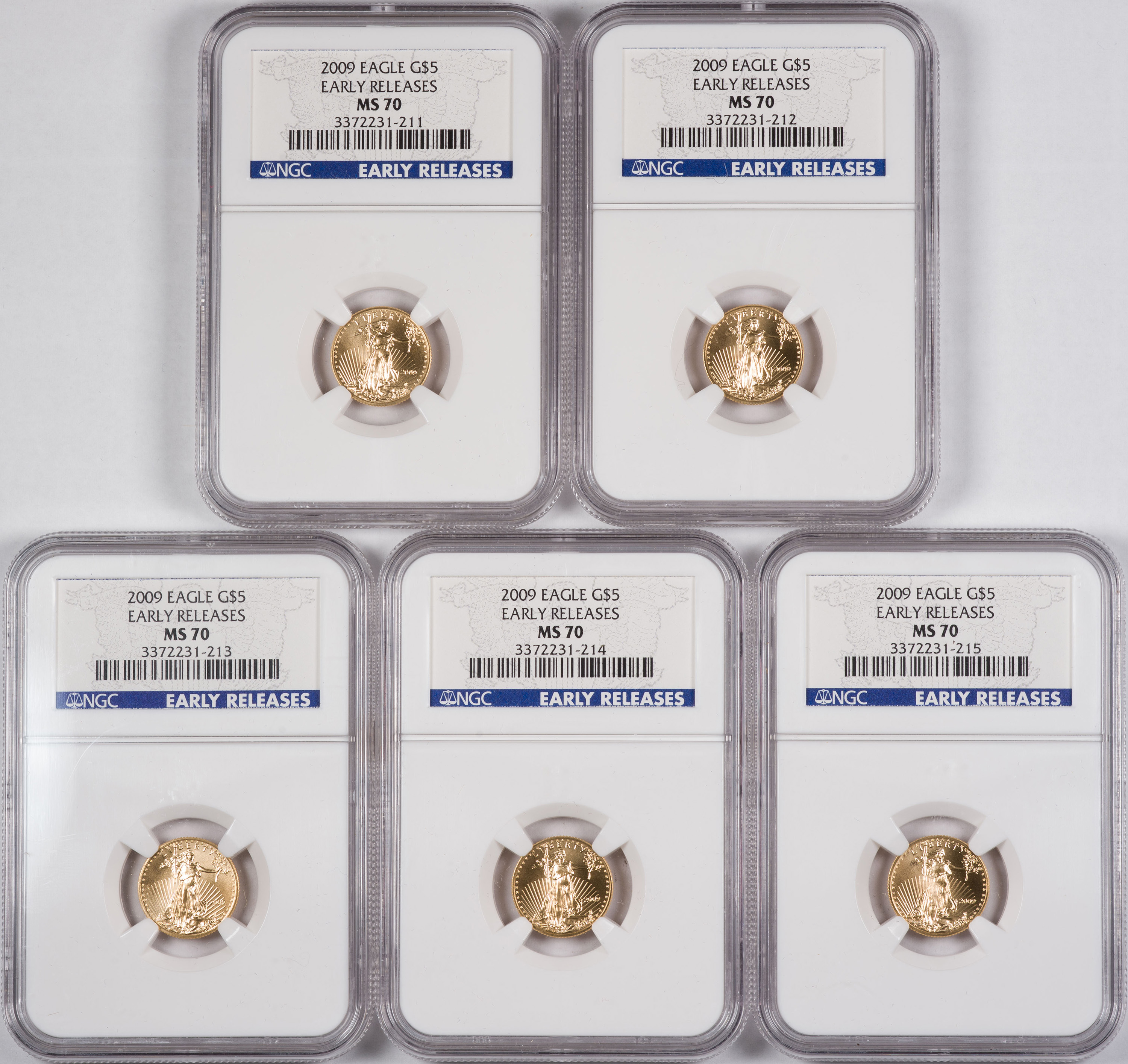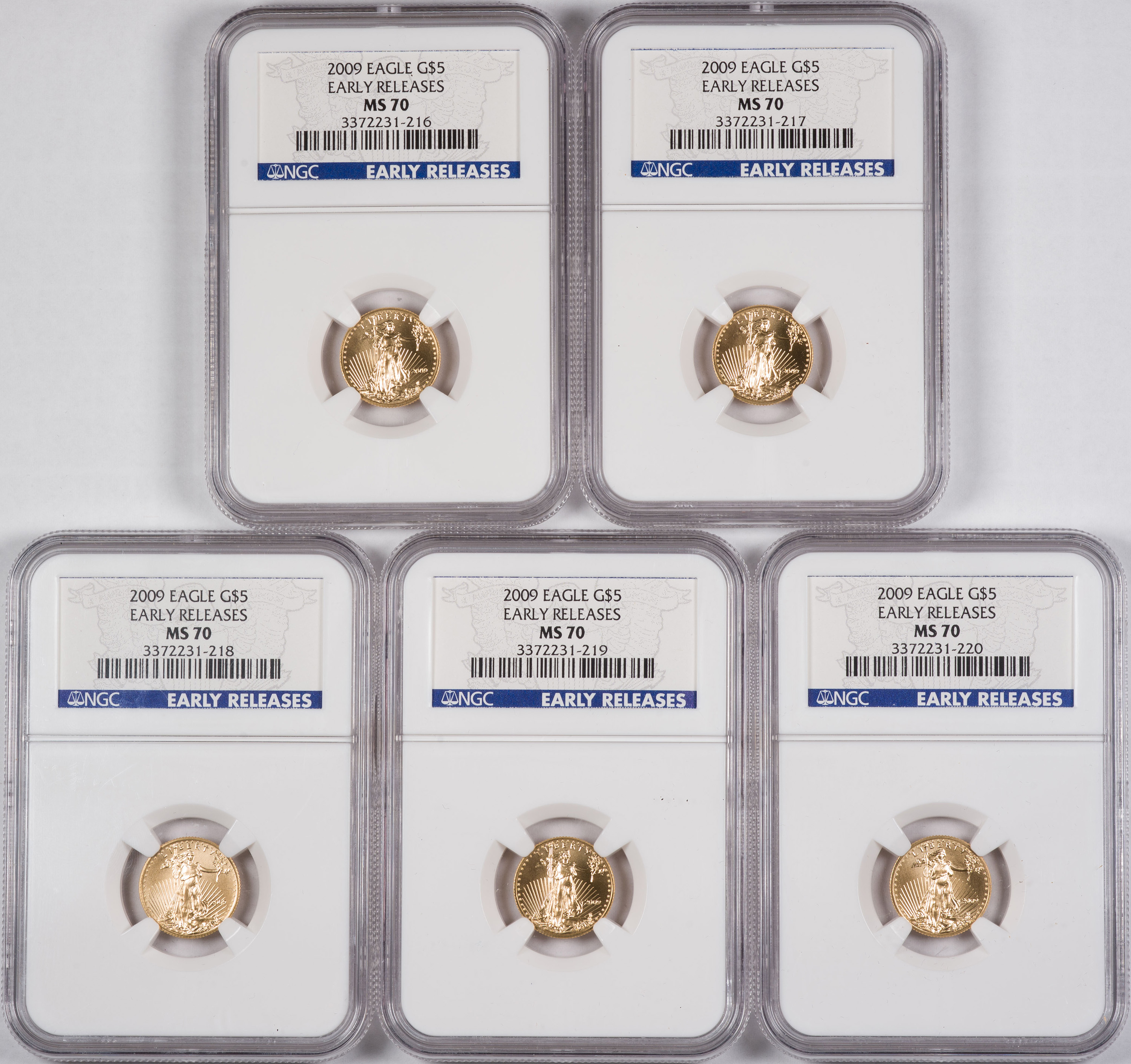 5 Pcs NGC MS-70 ER 2009 1/10 Ounce Gold Eagle