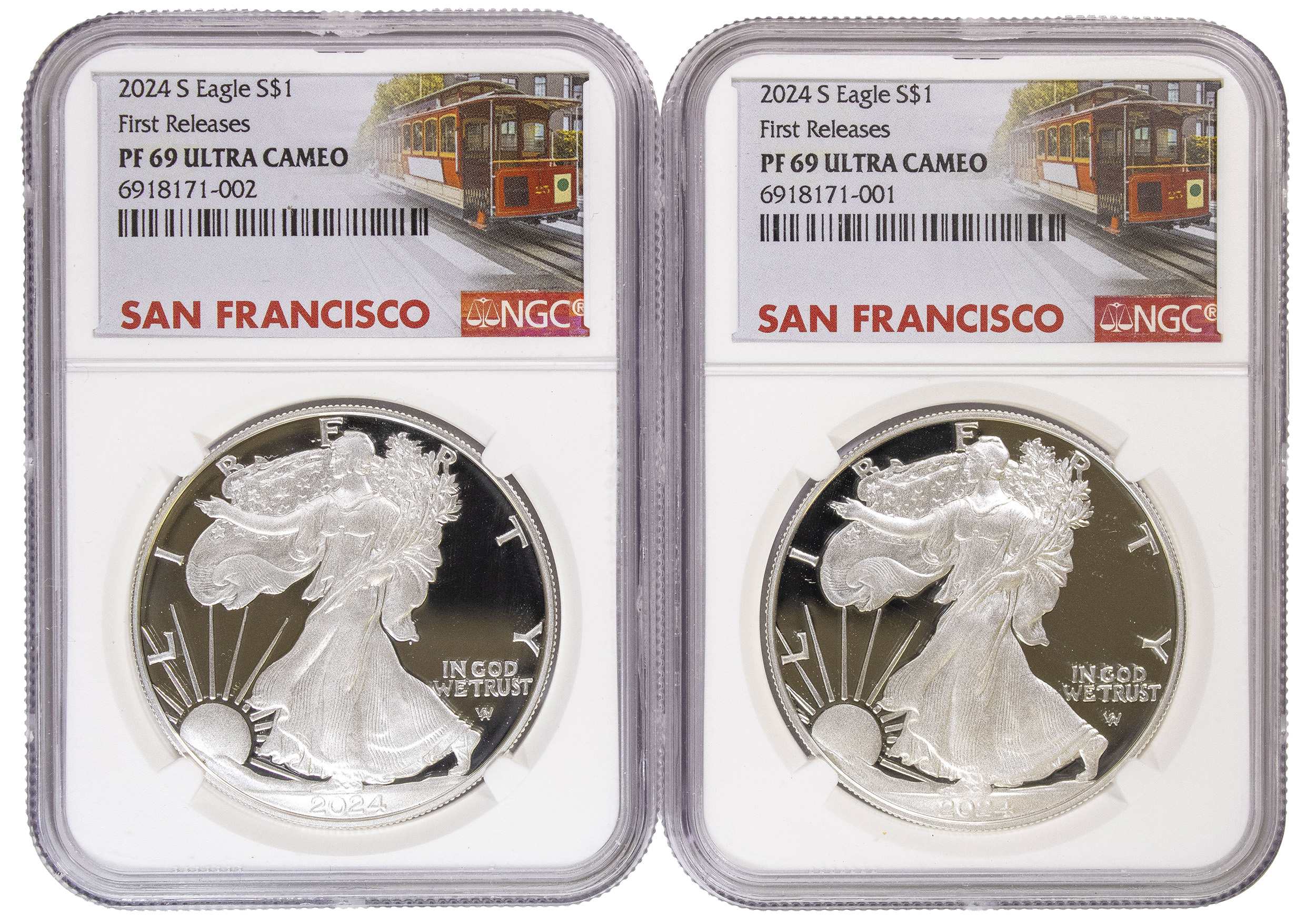 NGC Proof-69 Ultra Cameo 2024 Silver Eagle Pair