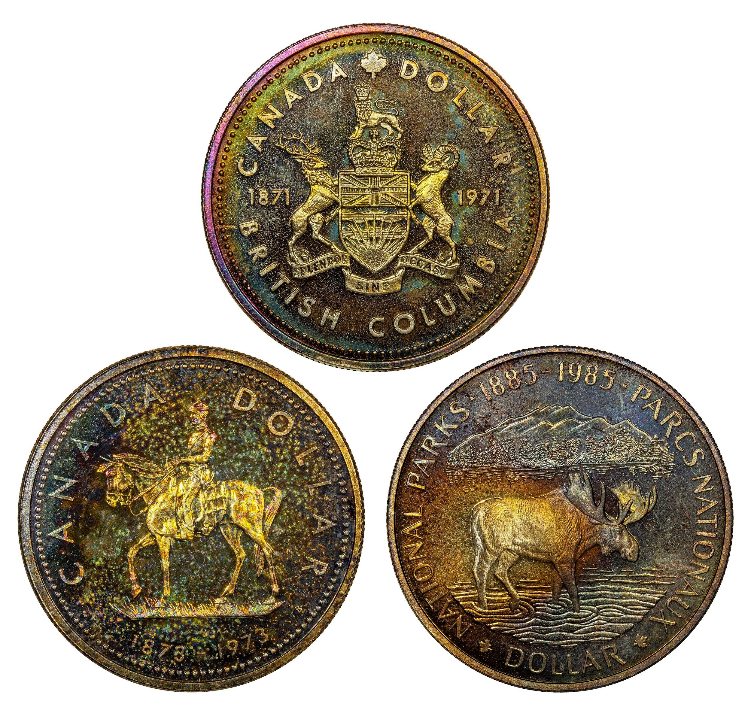 3 Colorful Canadian Silver Dollars