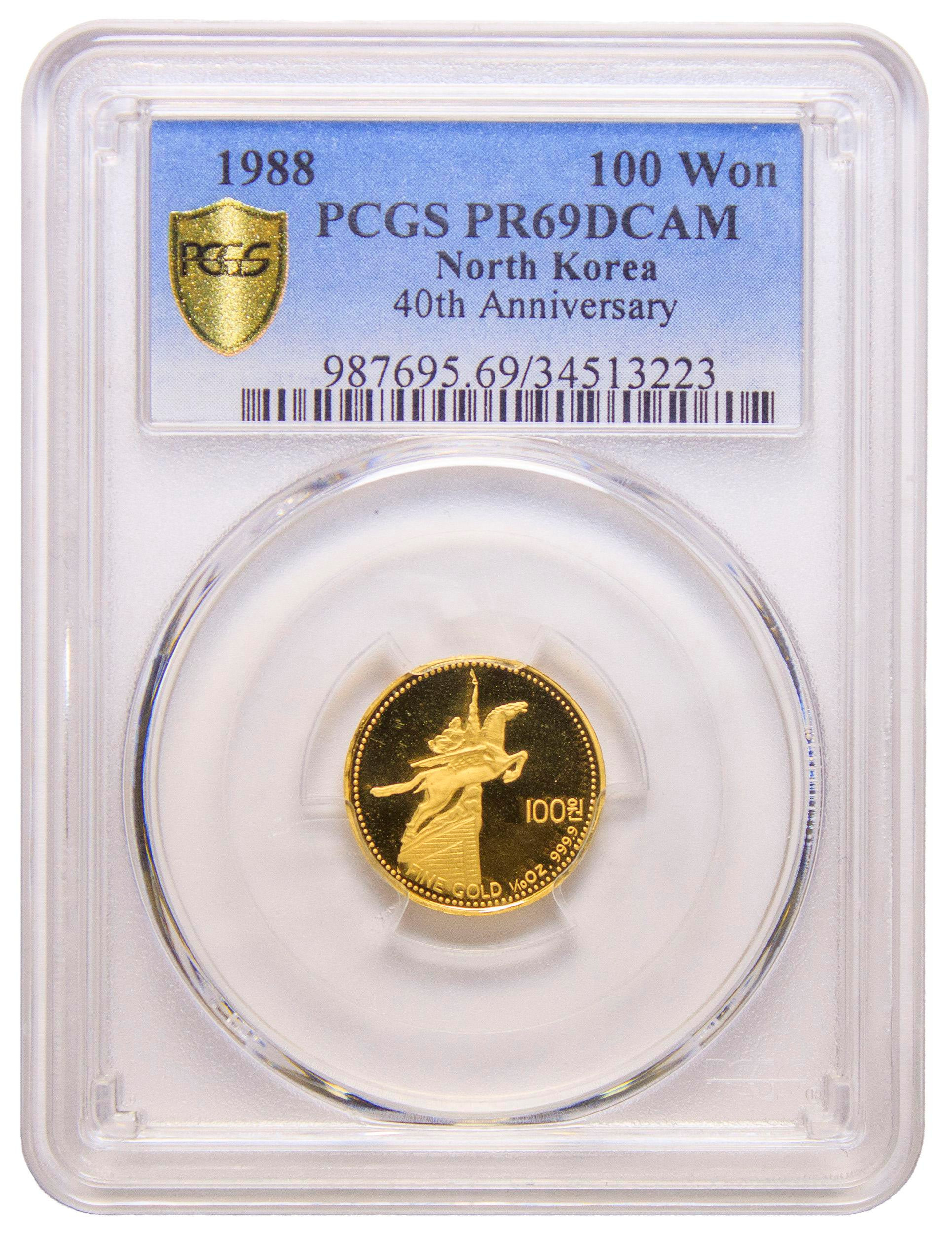 North Korea. PCGS PR-69 DCAM 1988 100 Won Gold