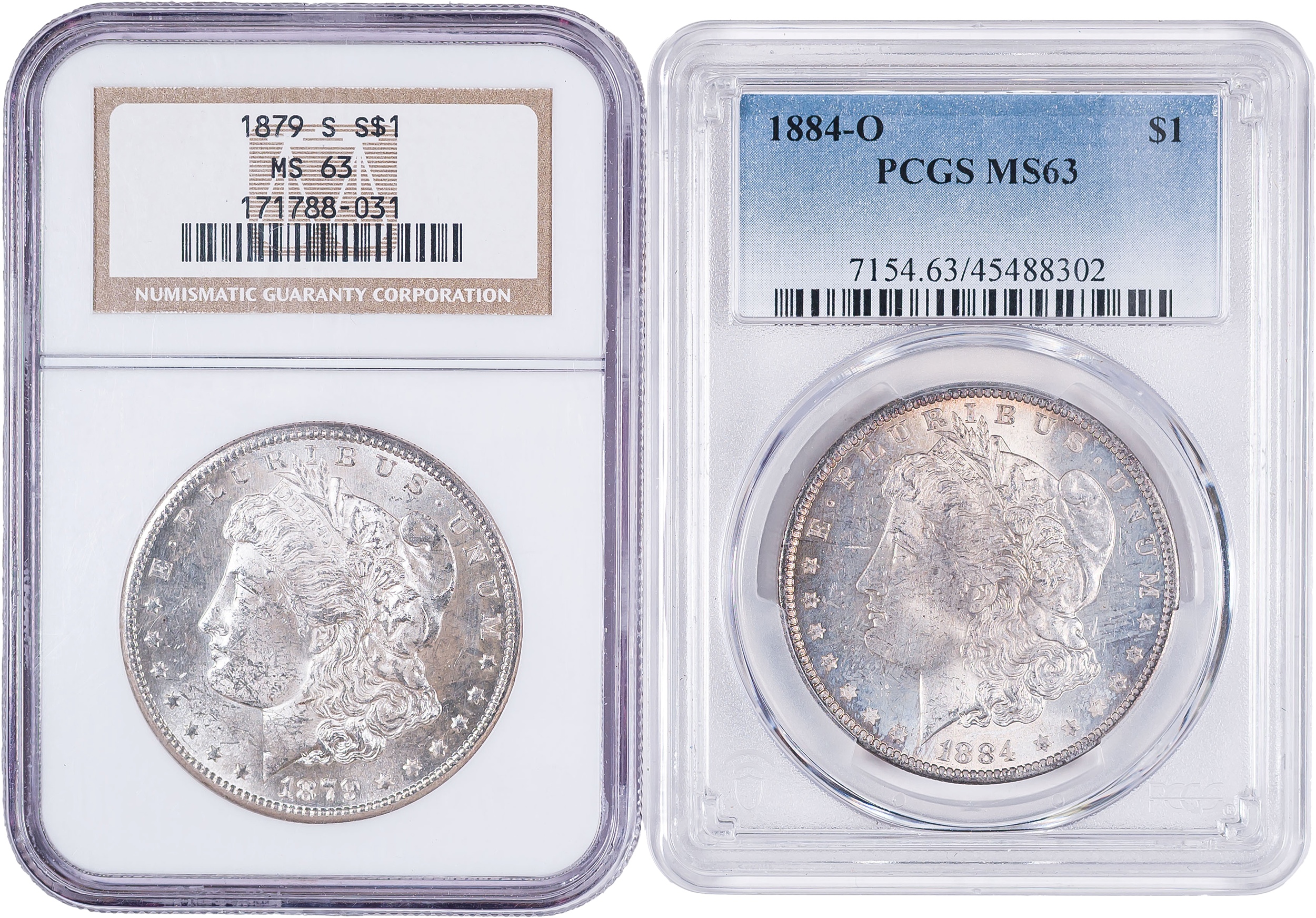 Pair of Graded MS-63 Morgan Dollars