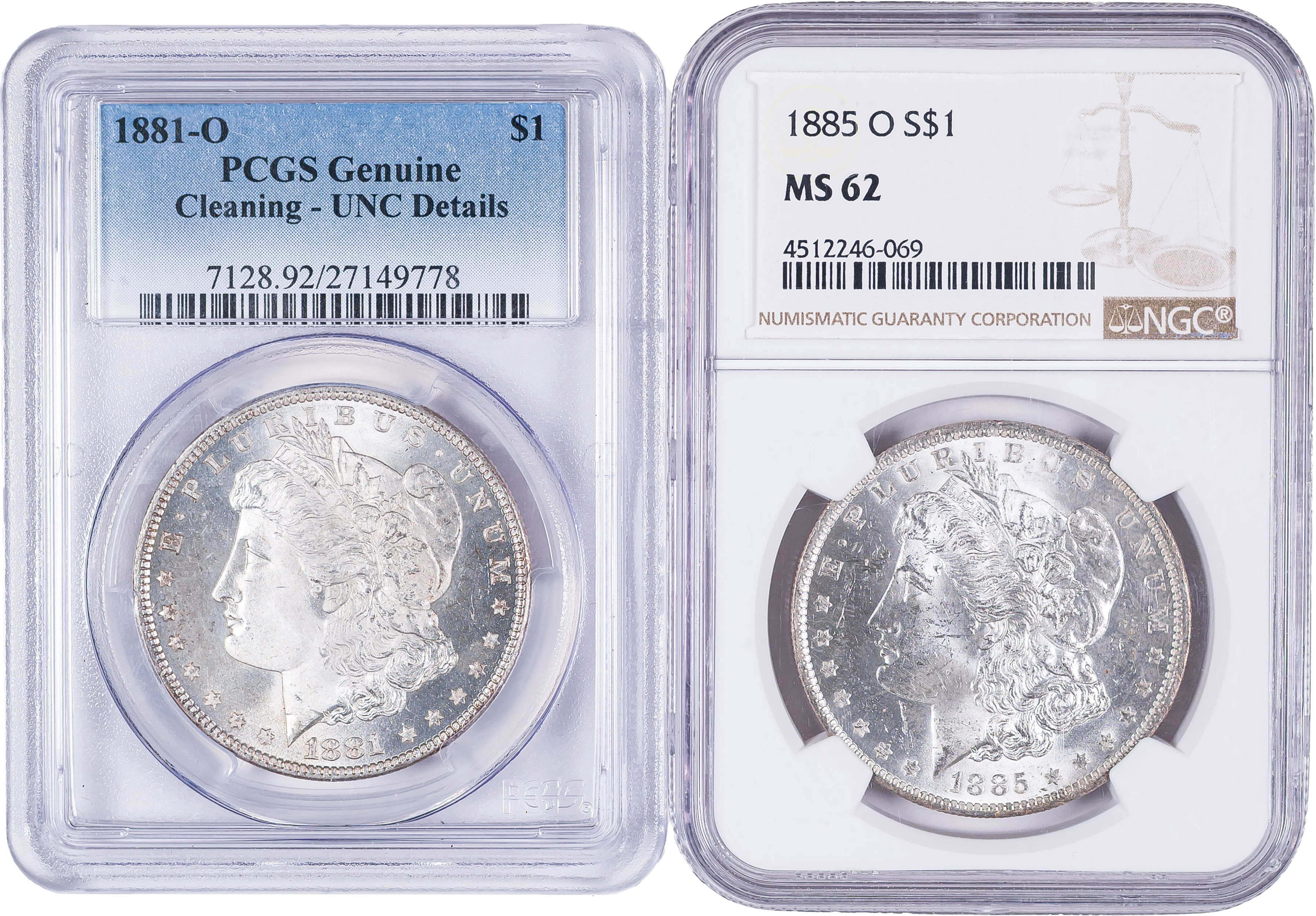Pair of Graded New Orleans Morgan Dollars
