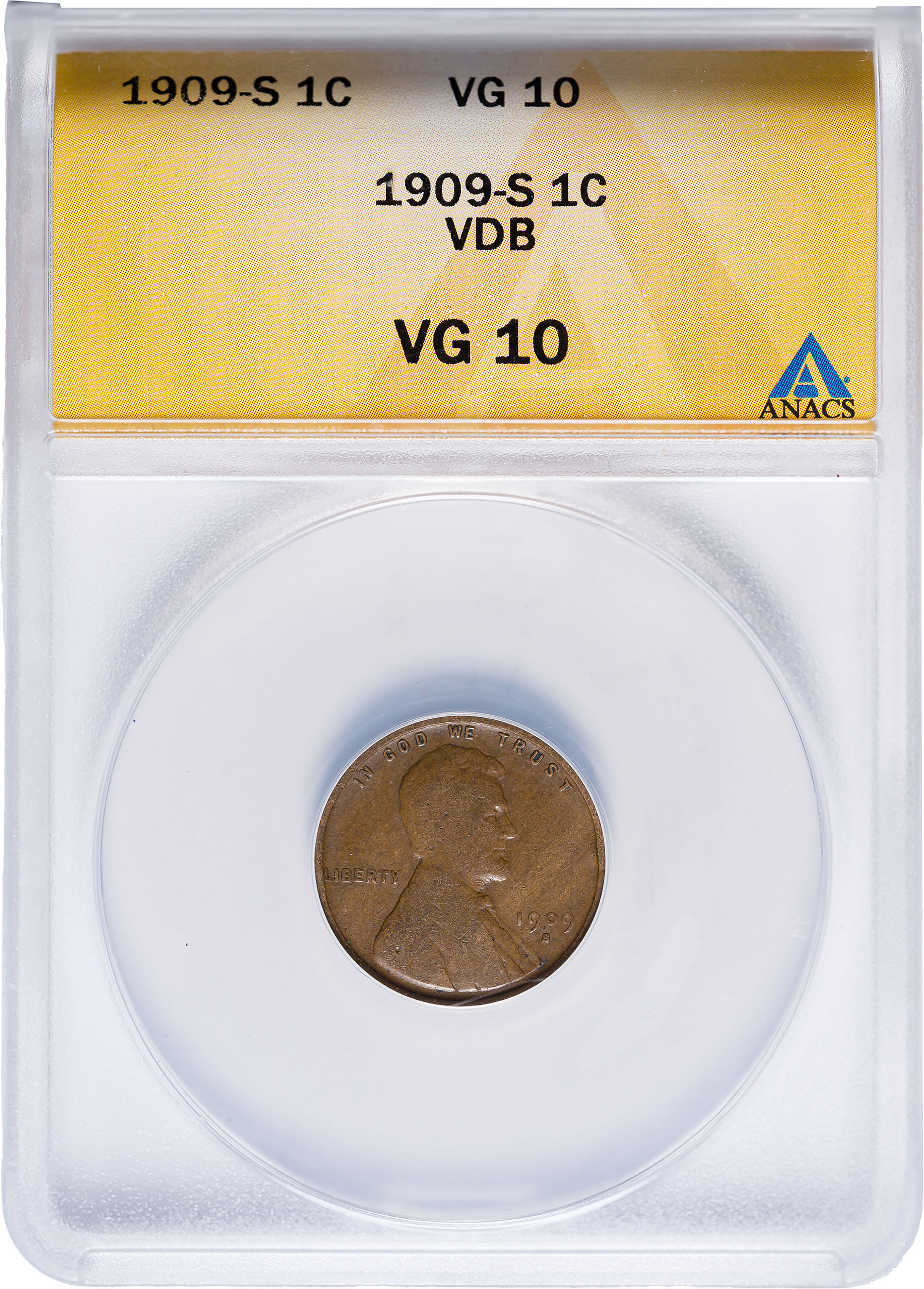 ANACS VG-10 1909-S V.D.B. Cent