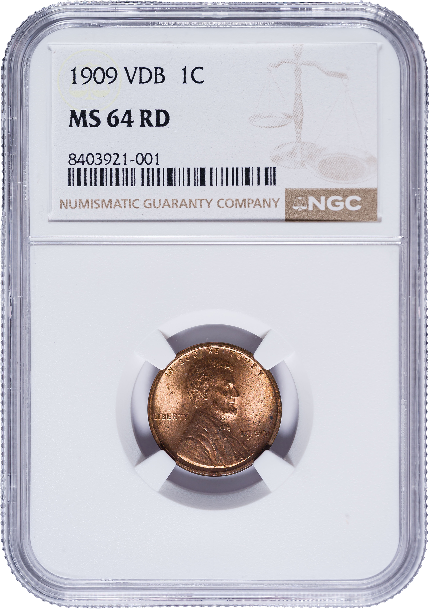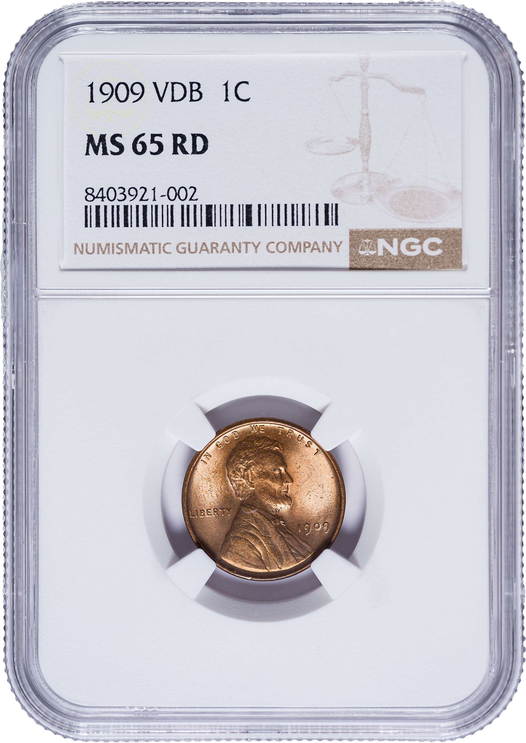 NGC MS-65 RD 1909 V.D.B. Lincoln Cent