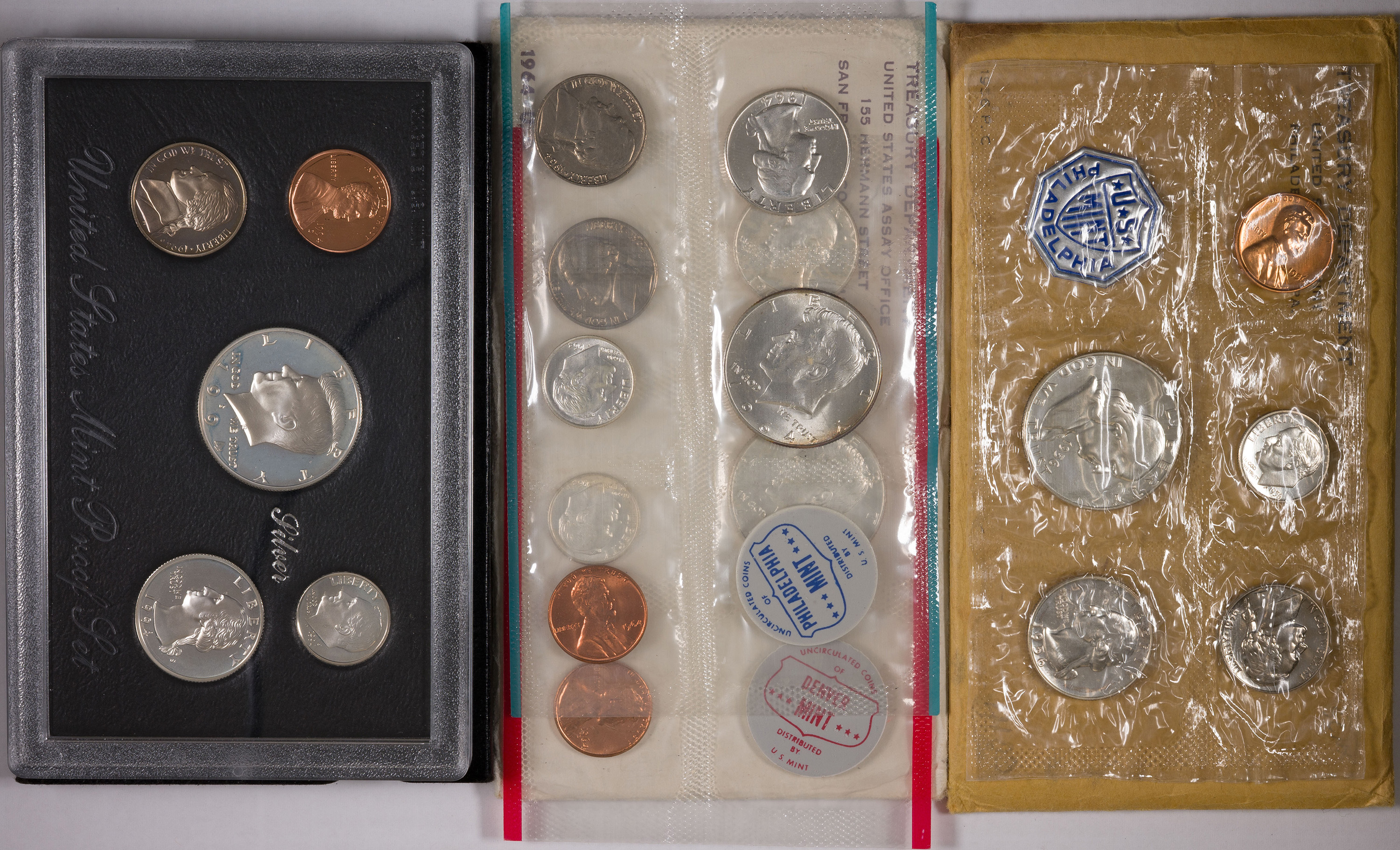 Trio Of 1964 Accent Hair Half Dollar Proof Sets