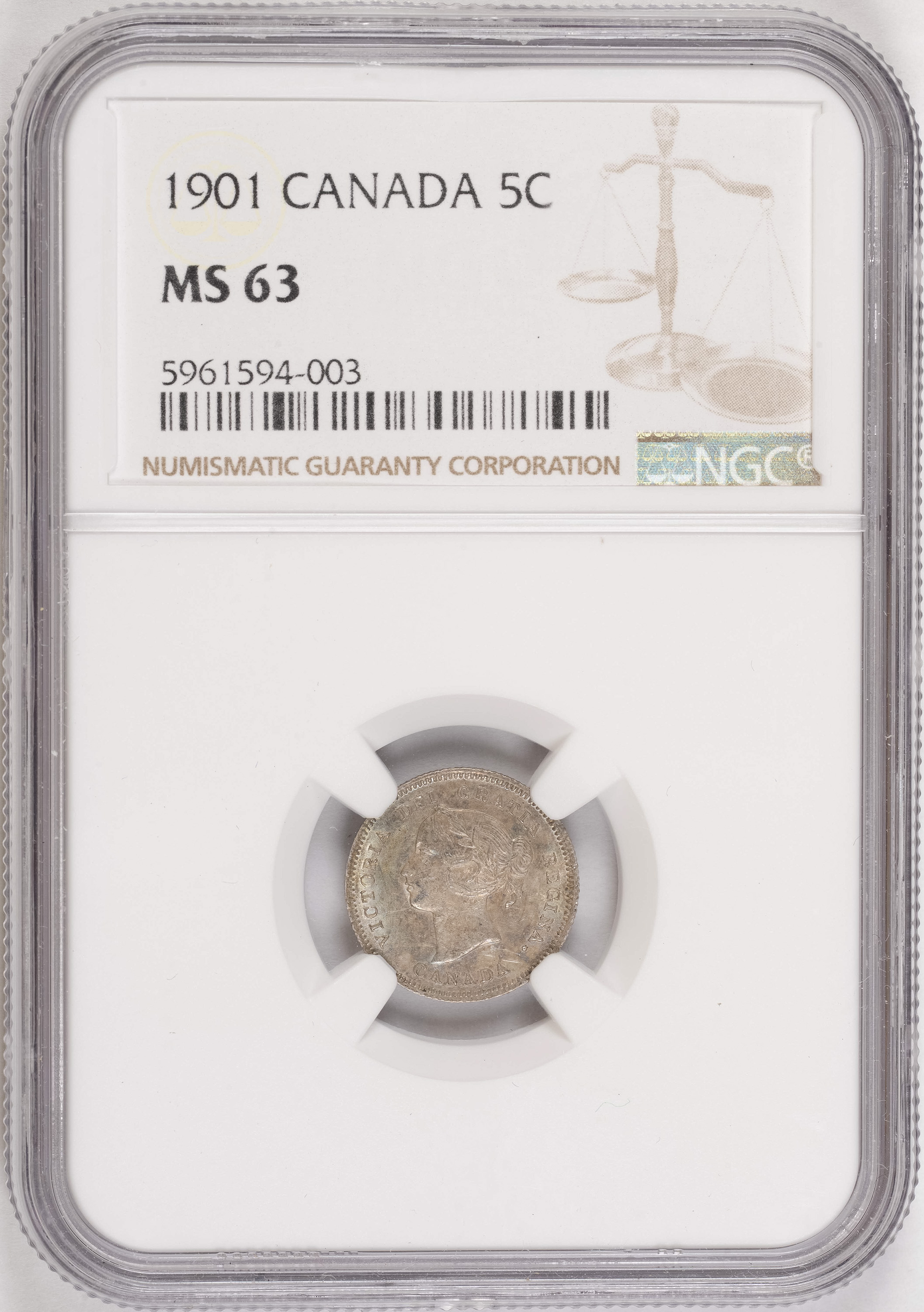 NGC MS-63 1901 Canadian 5 Cents