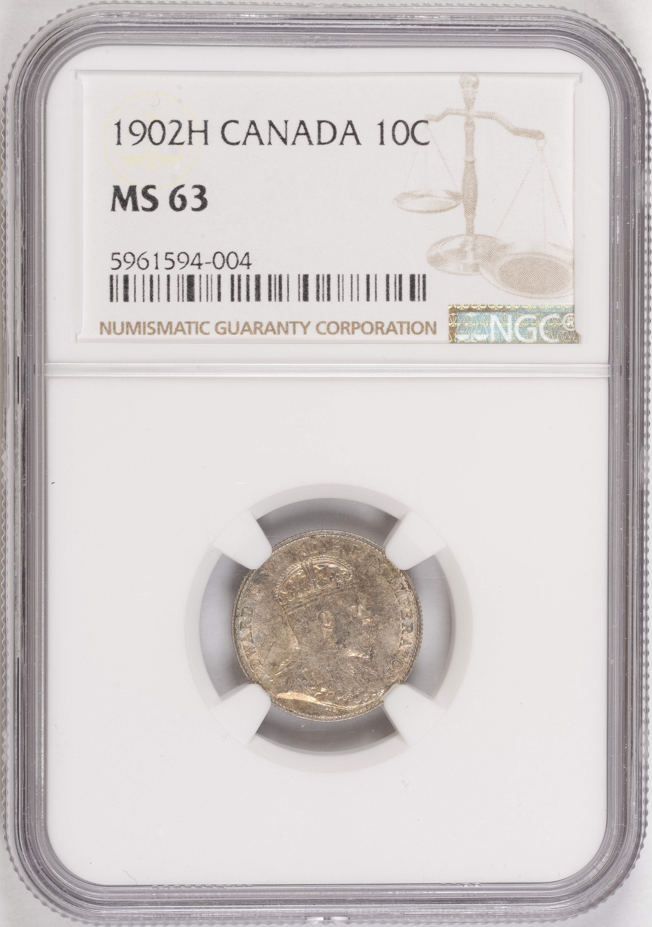 NGC MS-63 1902H Canadian 10 Cents
