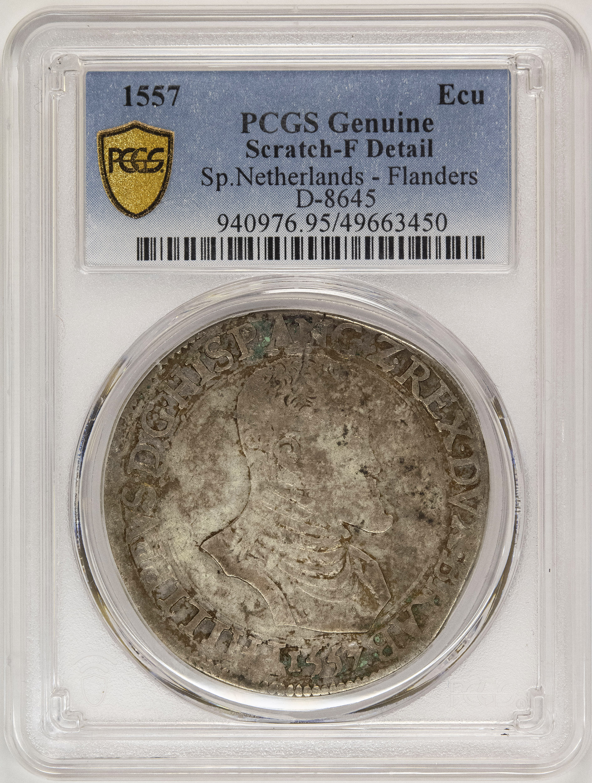 Spanish Netherlands. PCGS Fine Details 1557 Ecu