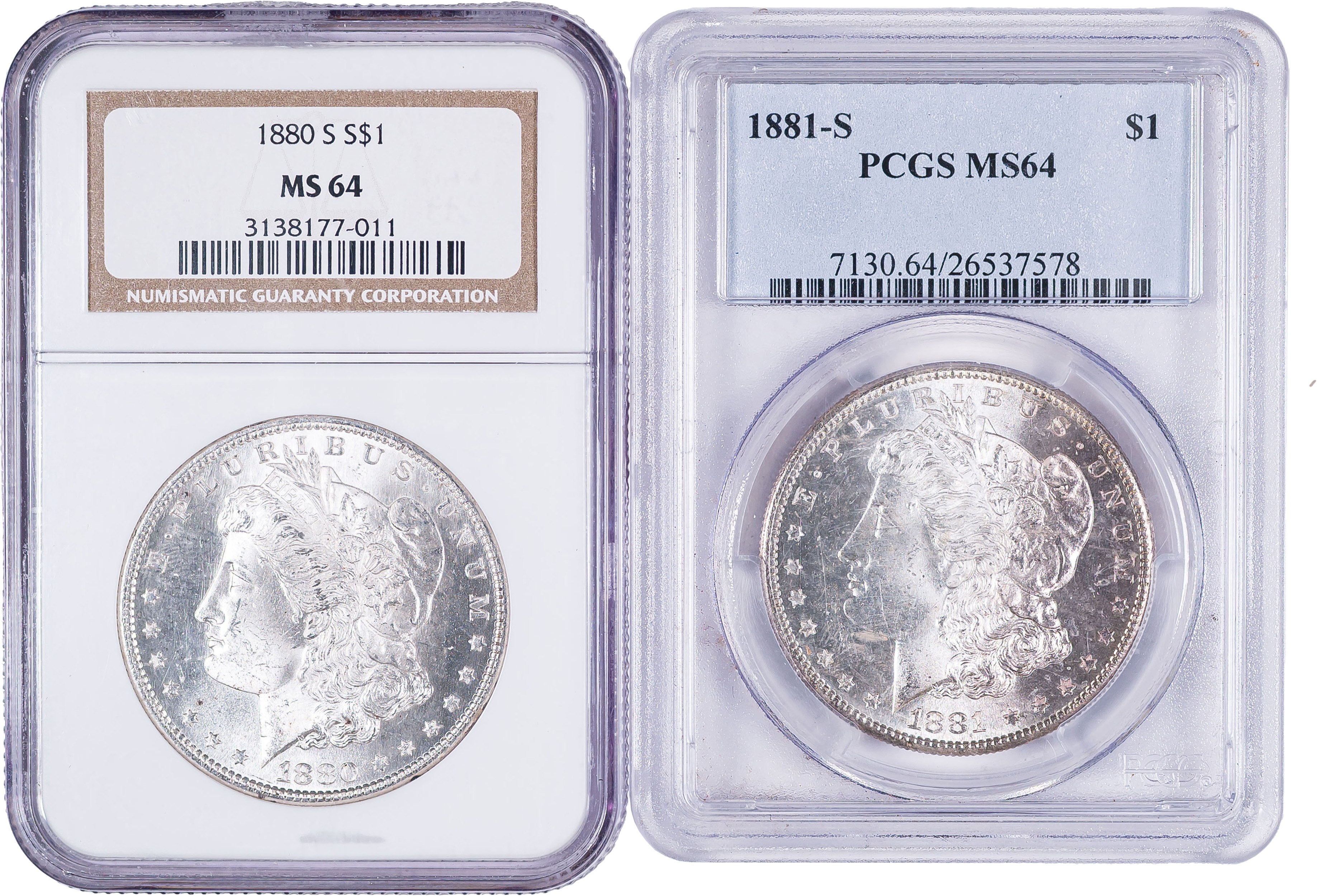 Pair of Graded San Francisco Morgan Dollars