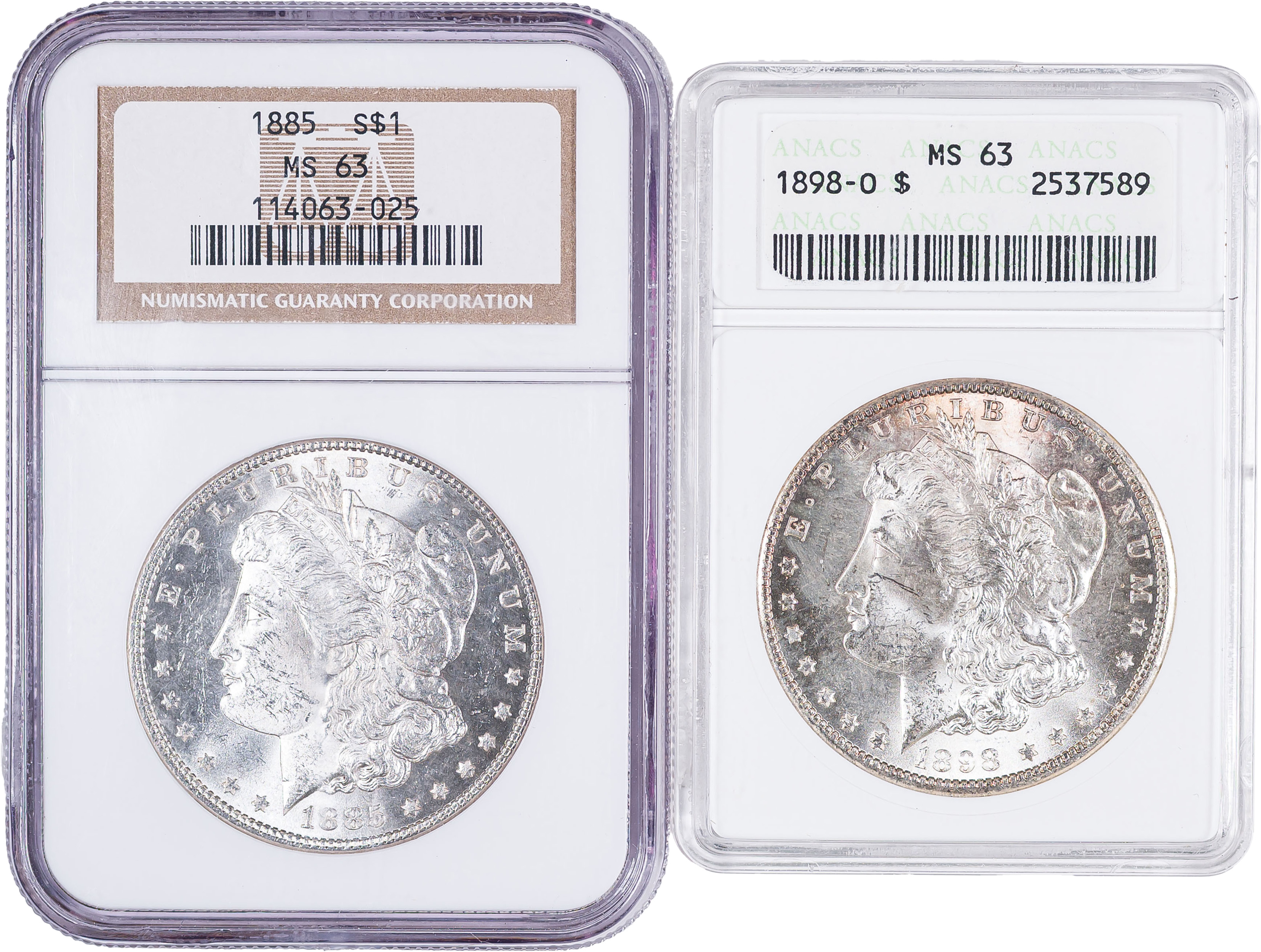 Pair of Graded MS-63 Morgan Dollars