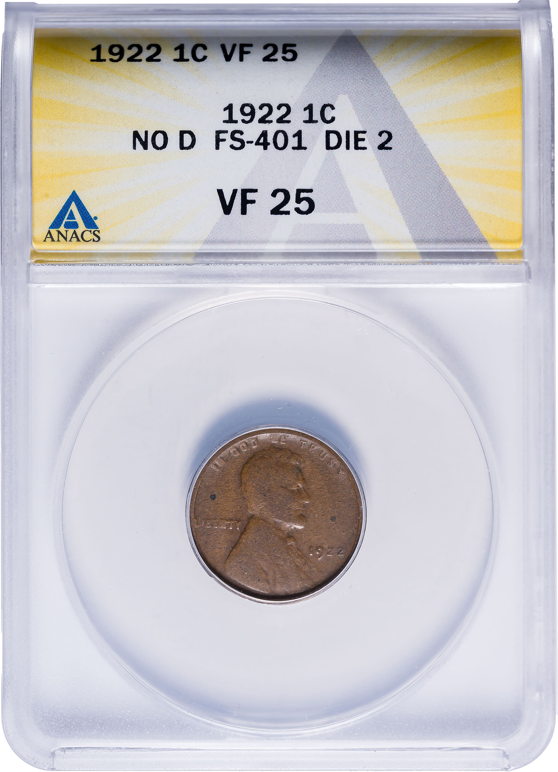 ANACS VF-25 1922 No D 1922 Lincoln Cent