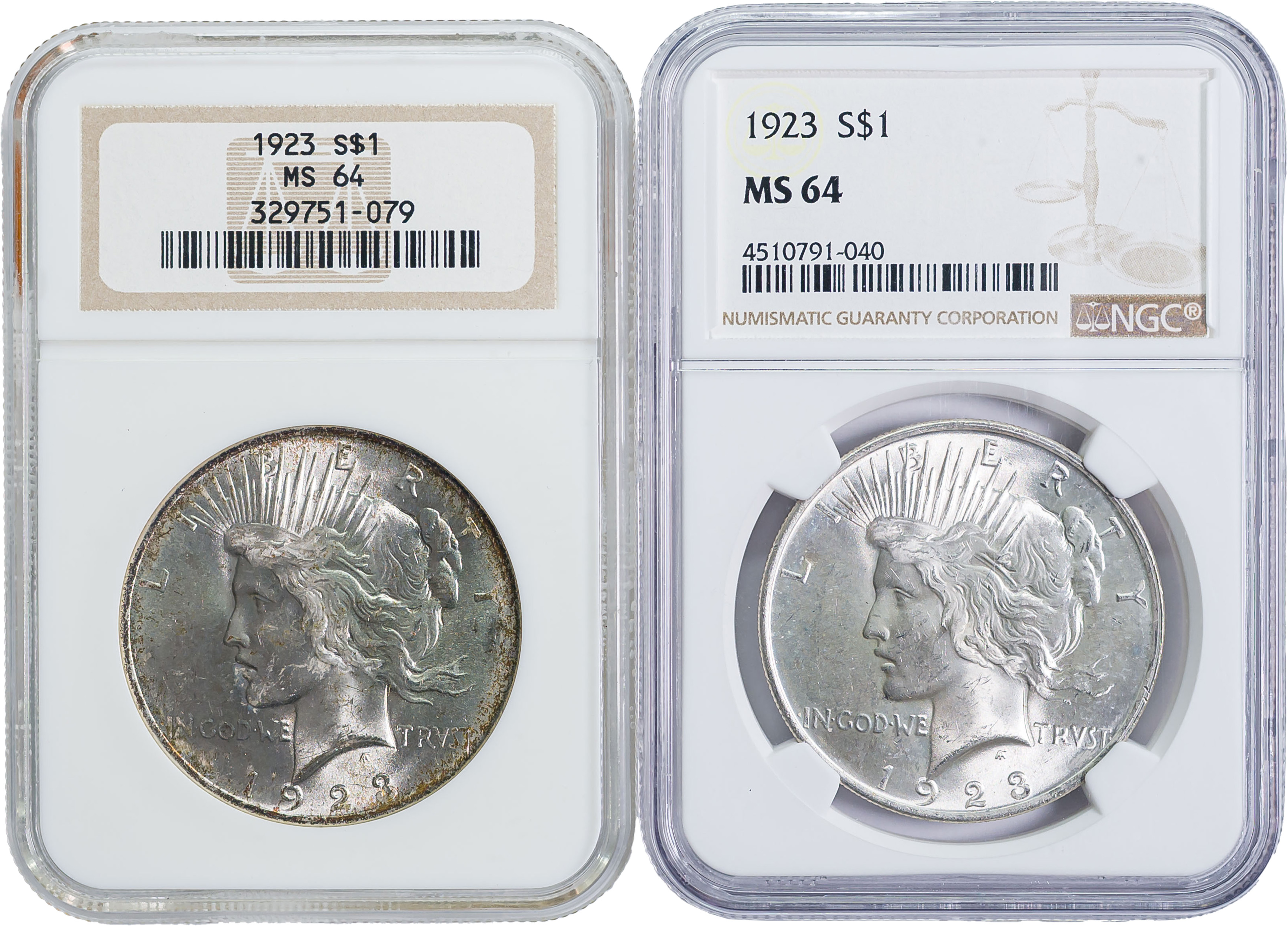 NGC MS-64 1923 Peace Dollar Pair