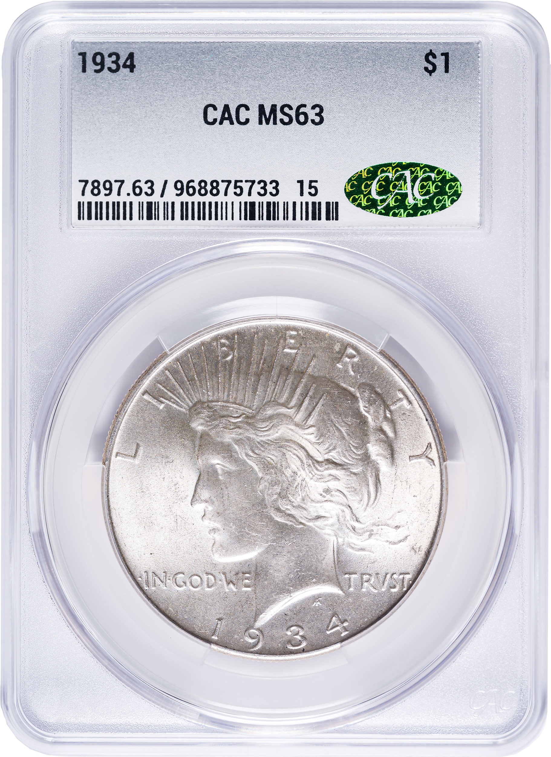 CACG MS-63 1934 Peace Dollar