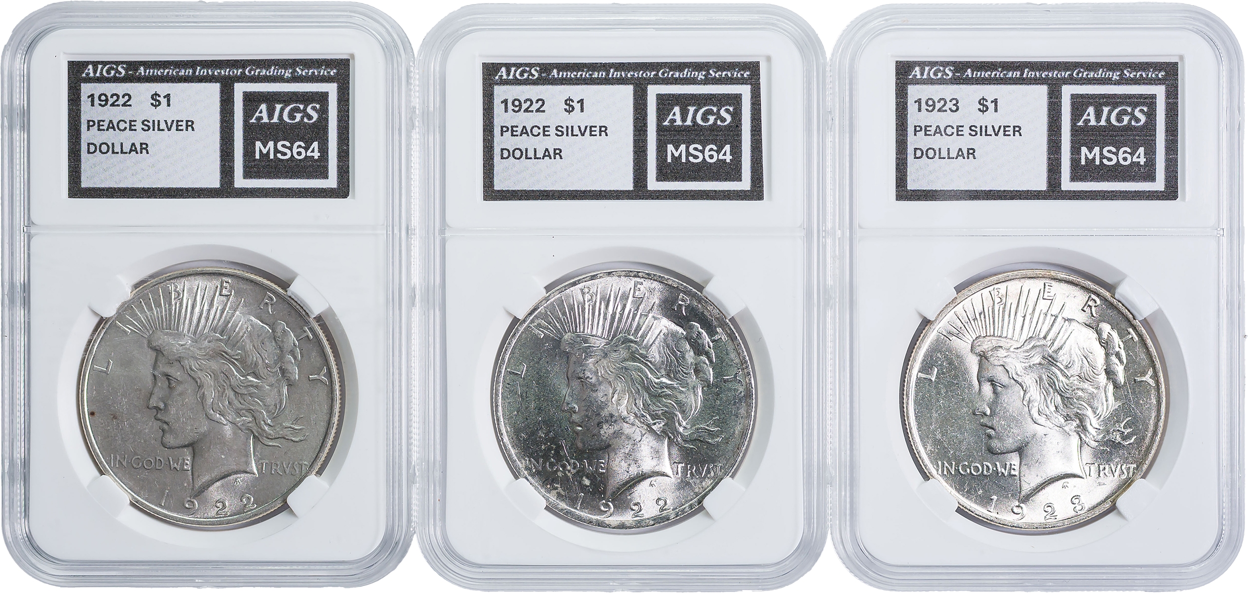 3 Generic Certified Peace Dollars