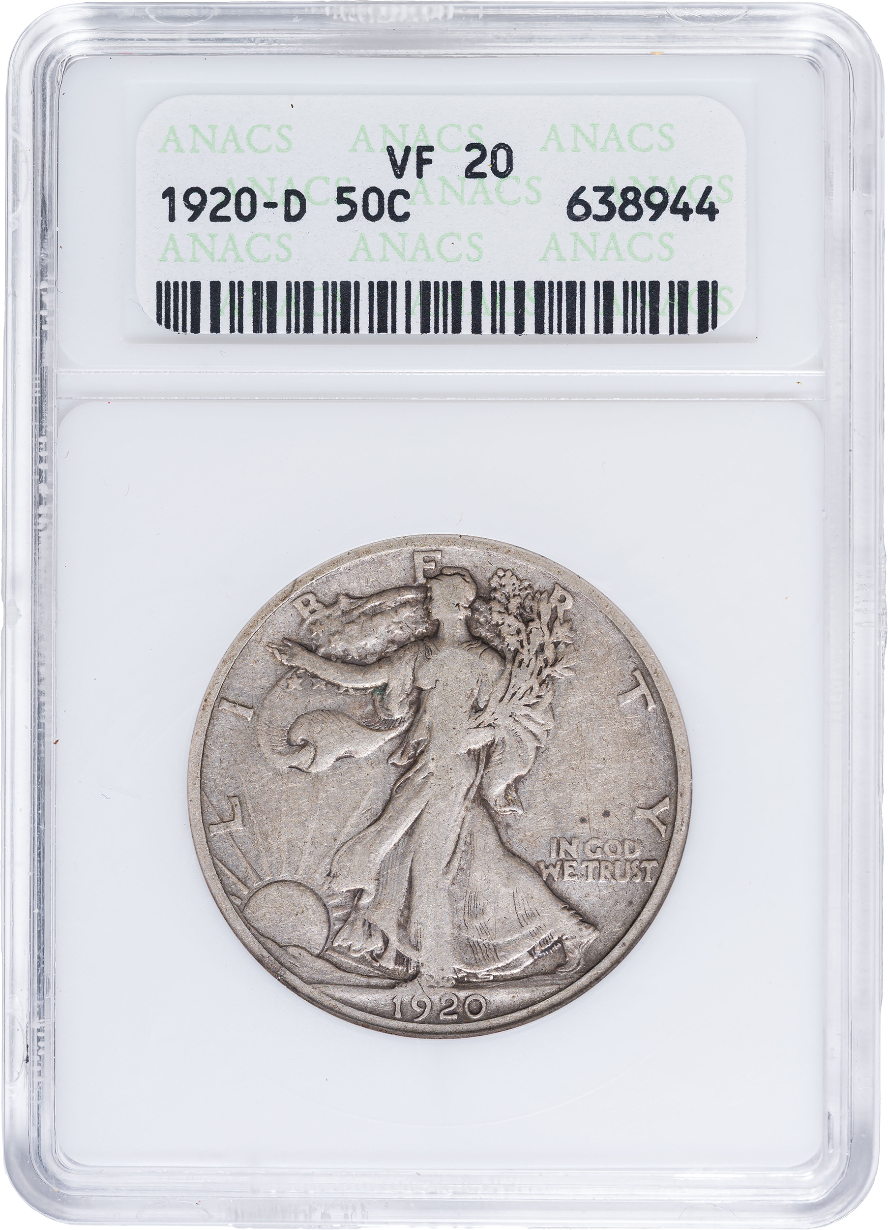 ANACS VF-20 1920-D Walking Liberty Half Dollar