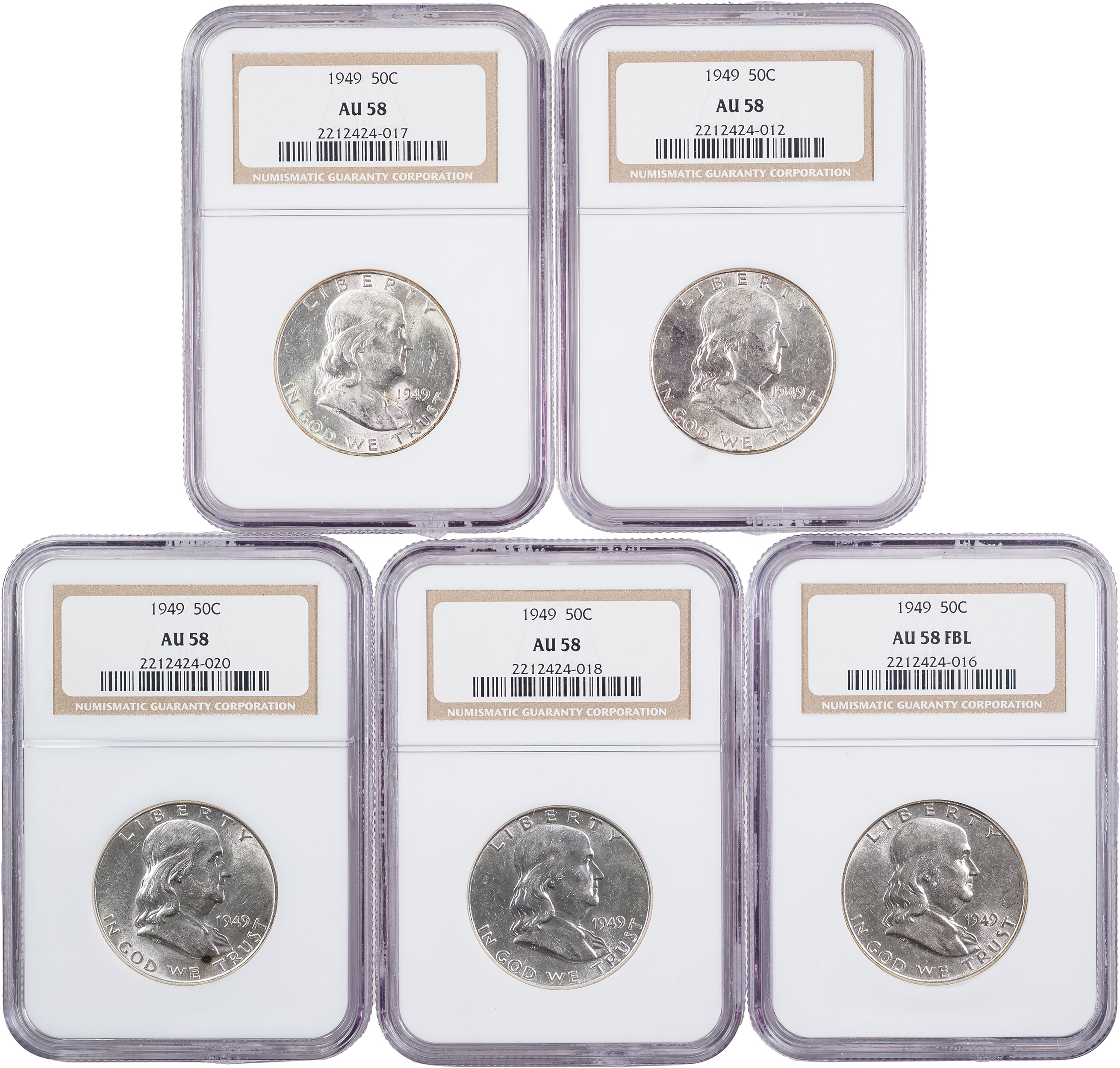 Five 1949 NGC-Certified Half Dollars