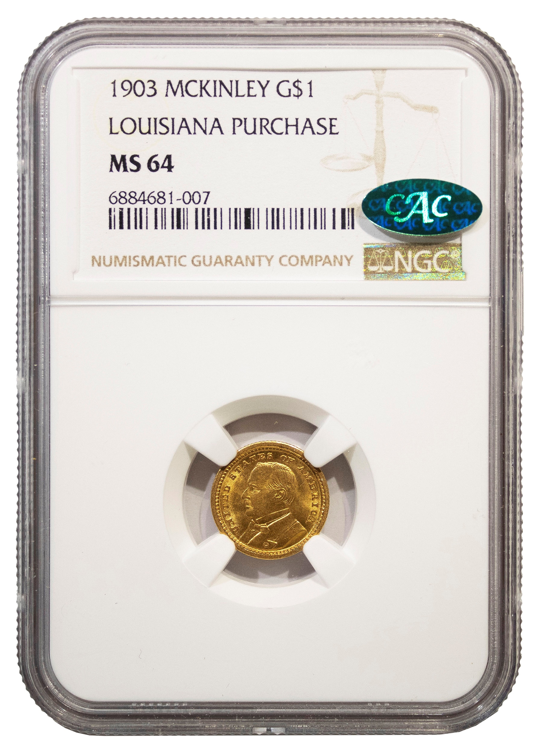 NGC MS-64 CAC Louisiana Purchase/McKinley Gold $1