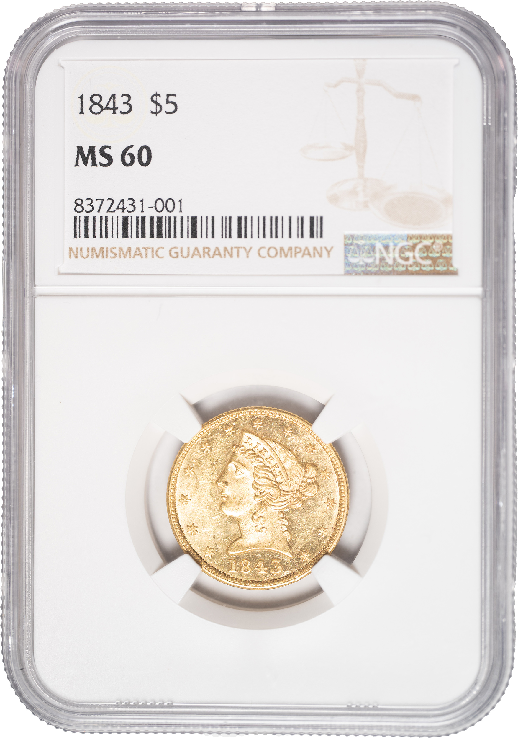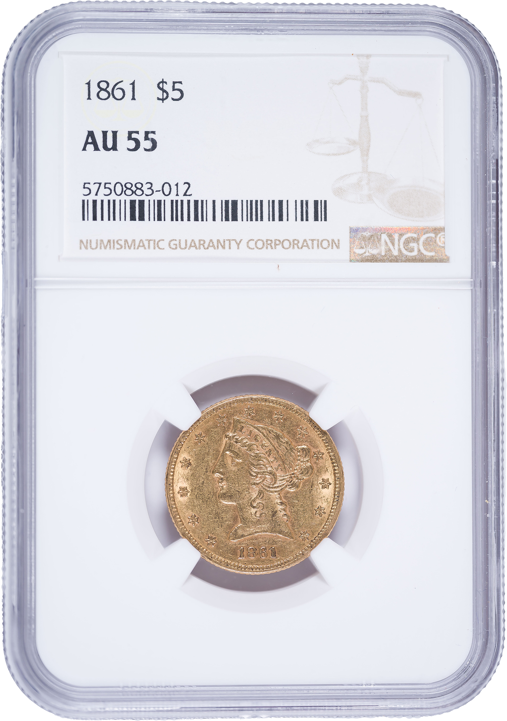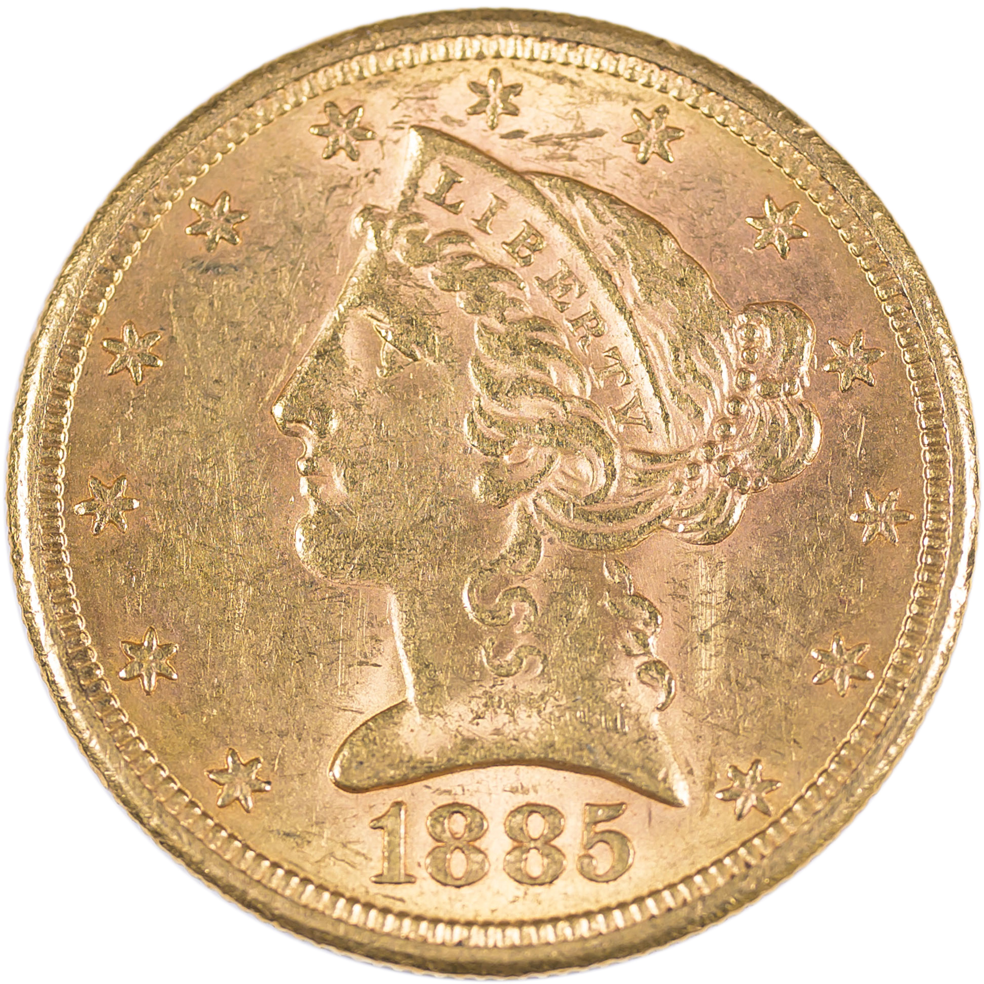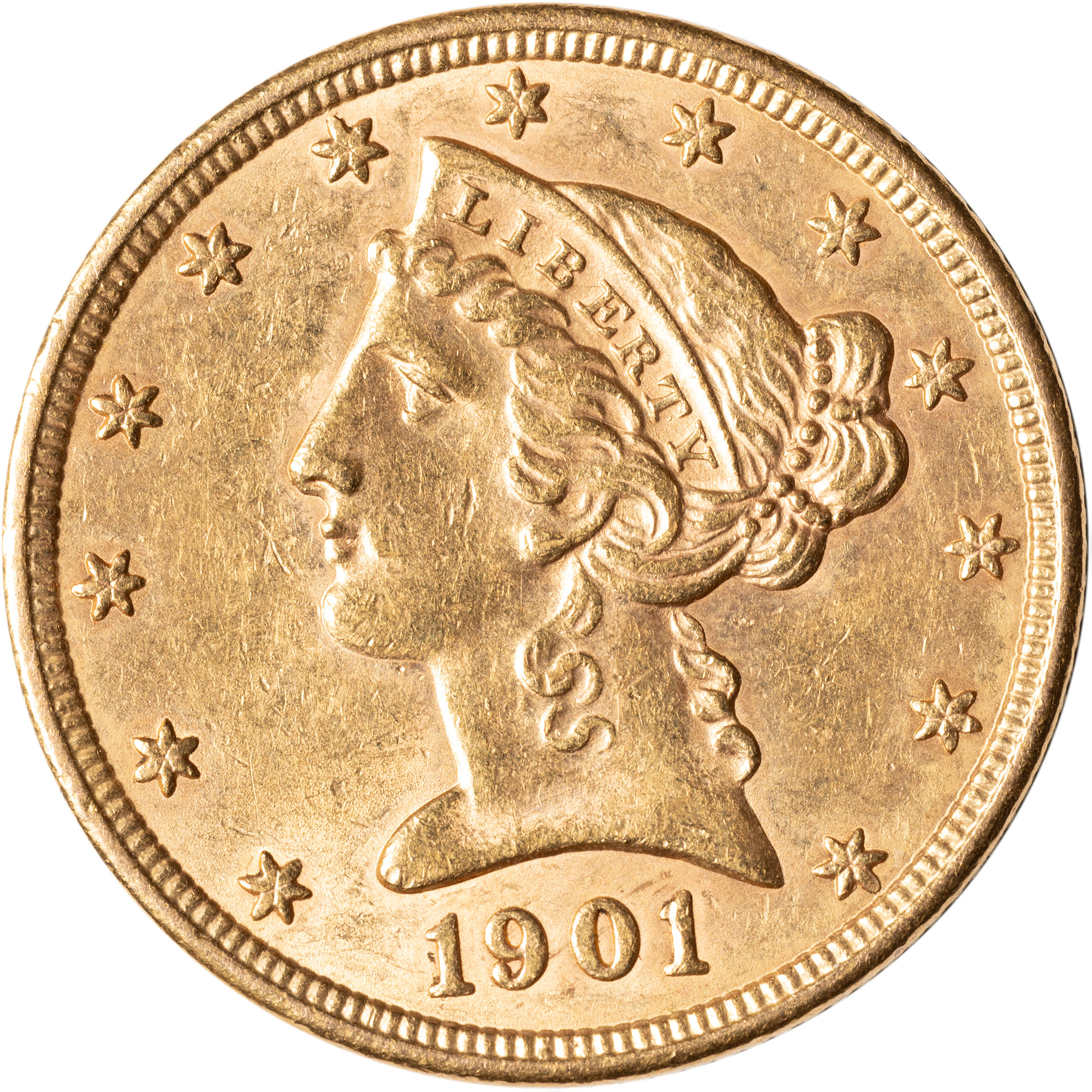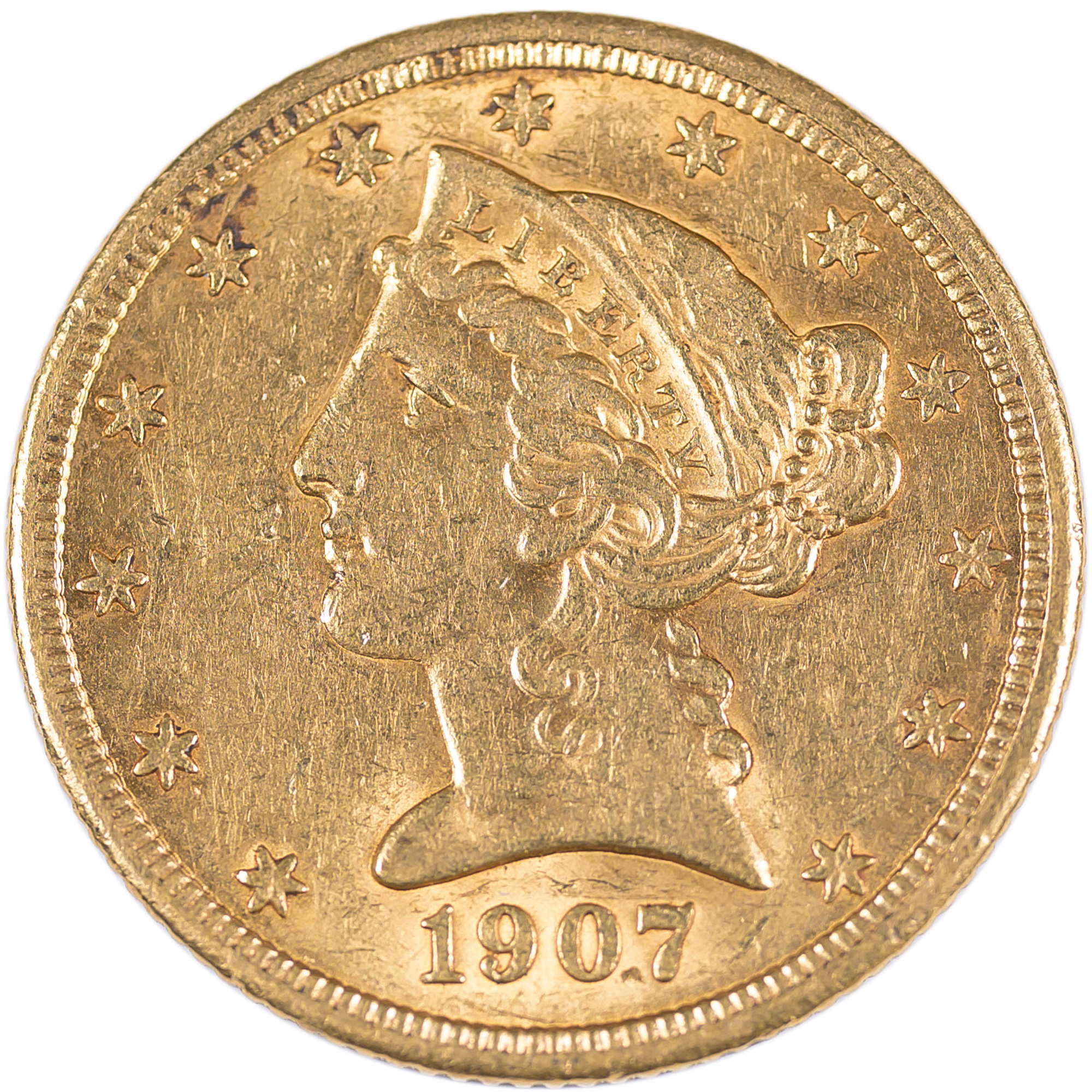 AU-50+ 1907 Liberty $5 Gold Liberty
