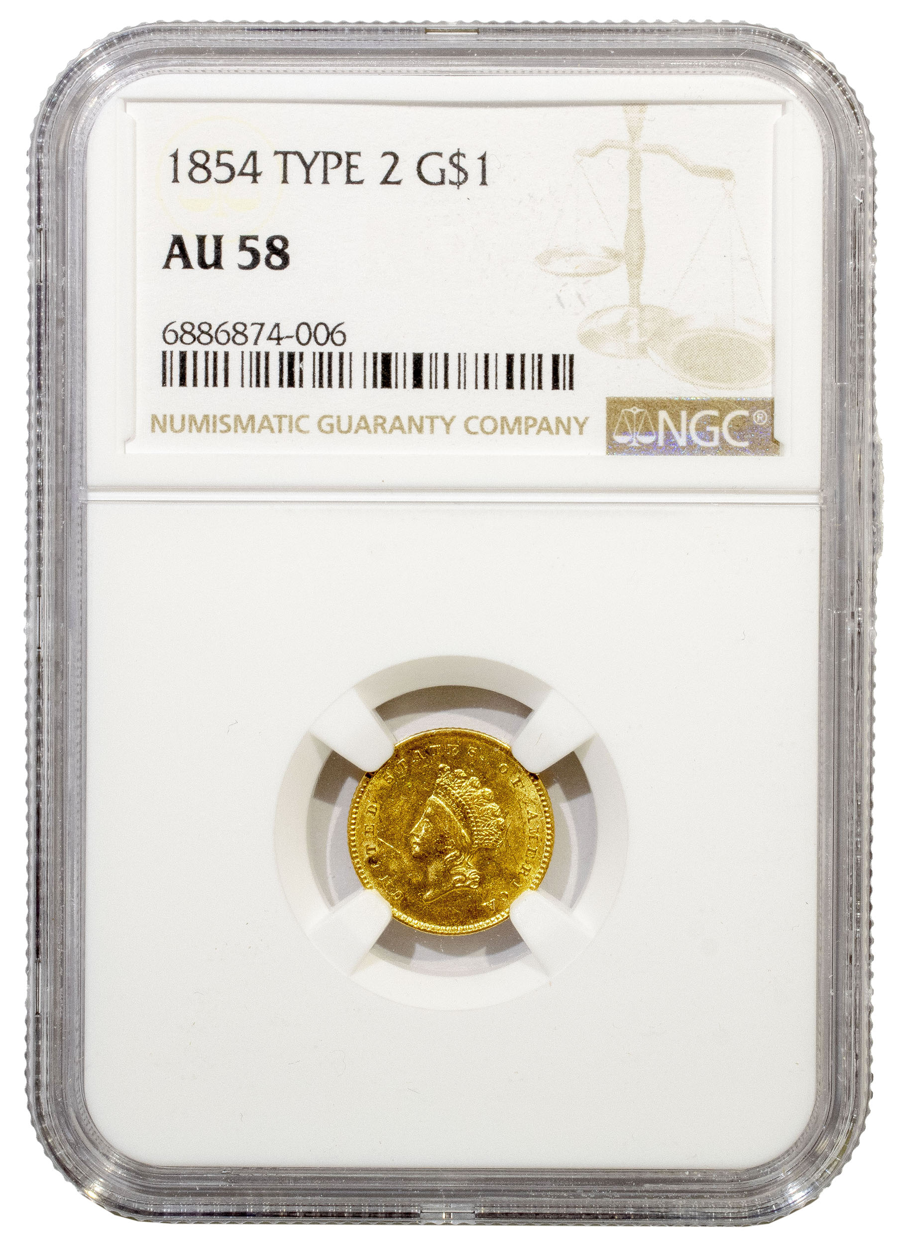NGC AU-58 1854 Type II Gold $1