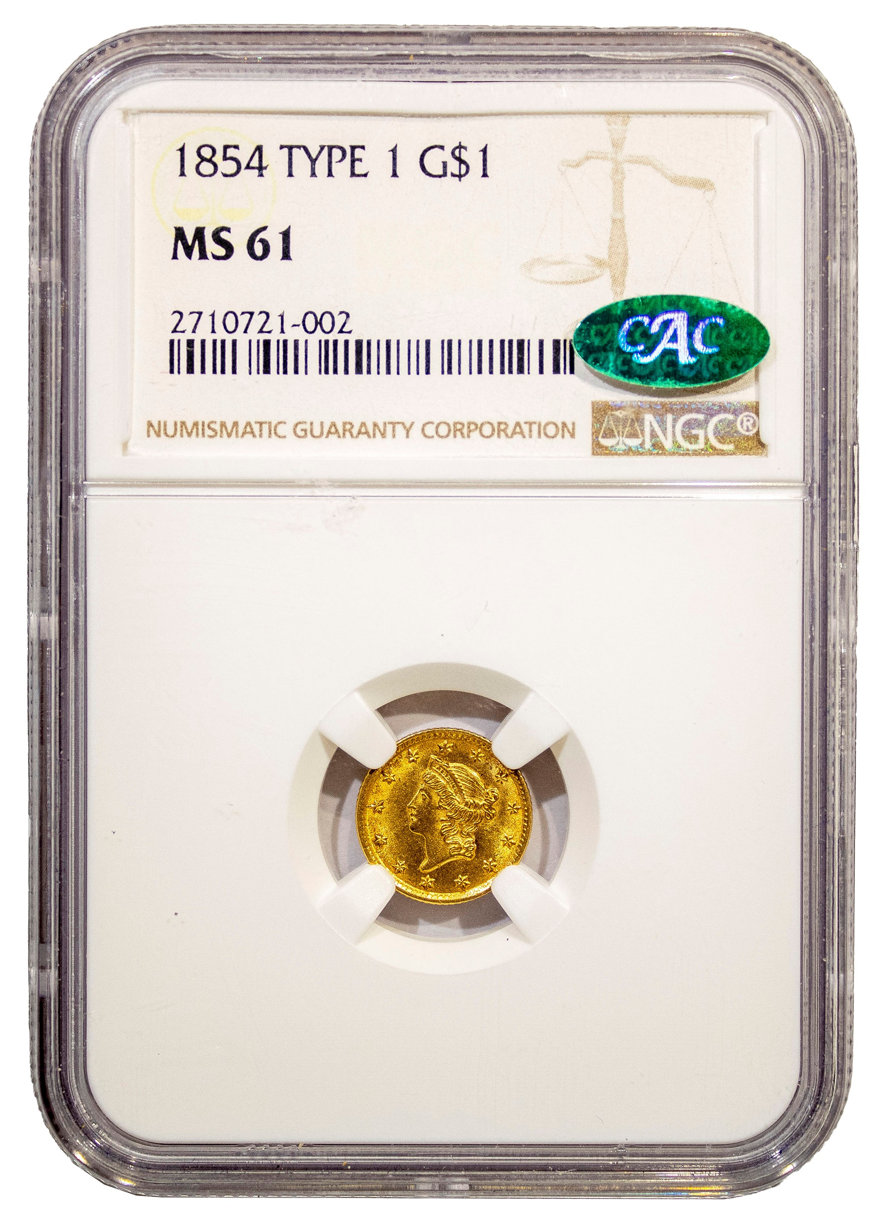 NGC MS-61 CAC 1854 Type I Gold $1