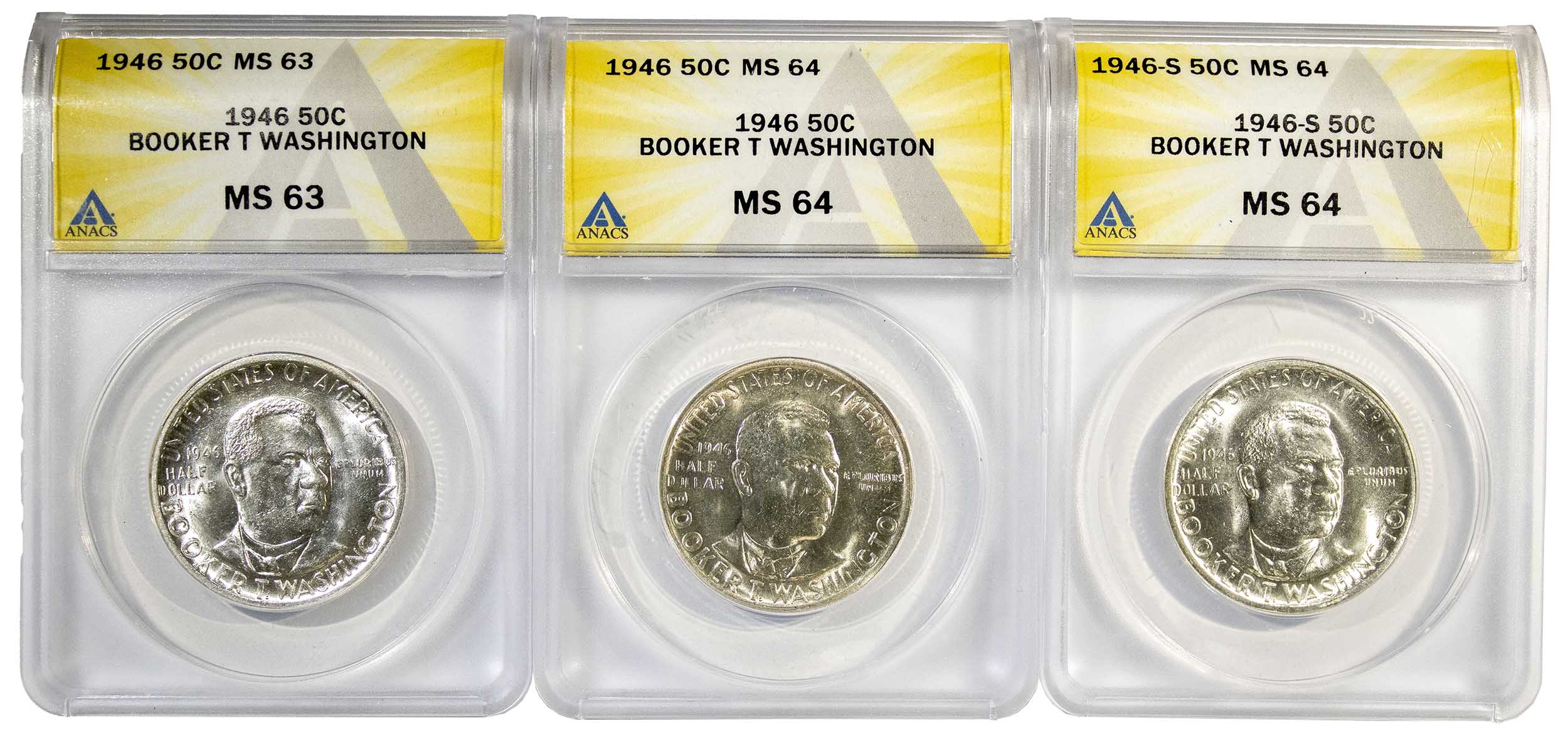 ANACS-Certified B.T. Washington Half Dollar Trio