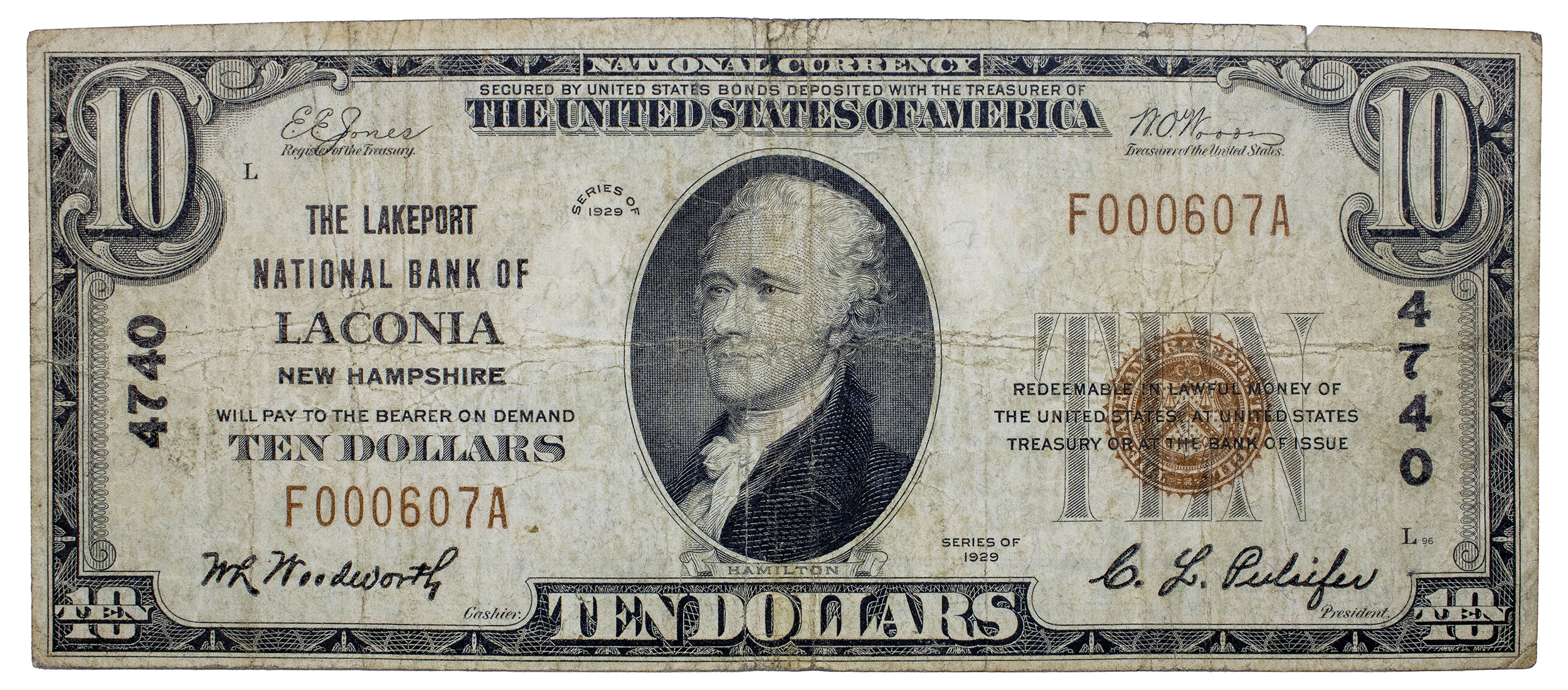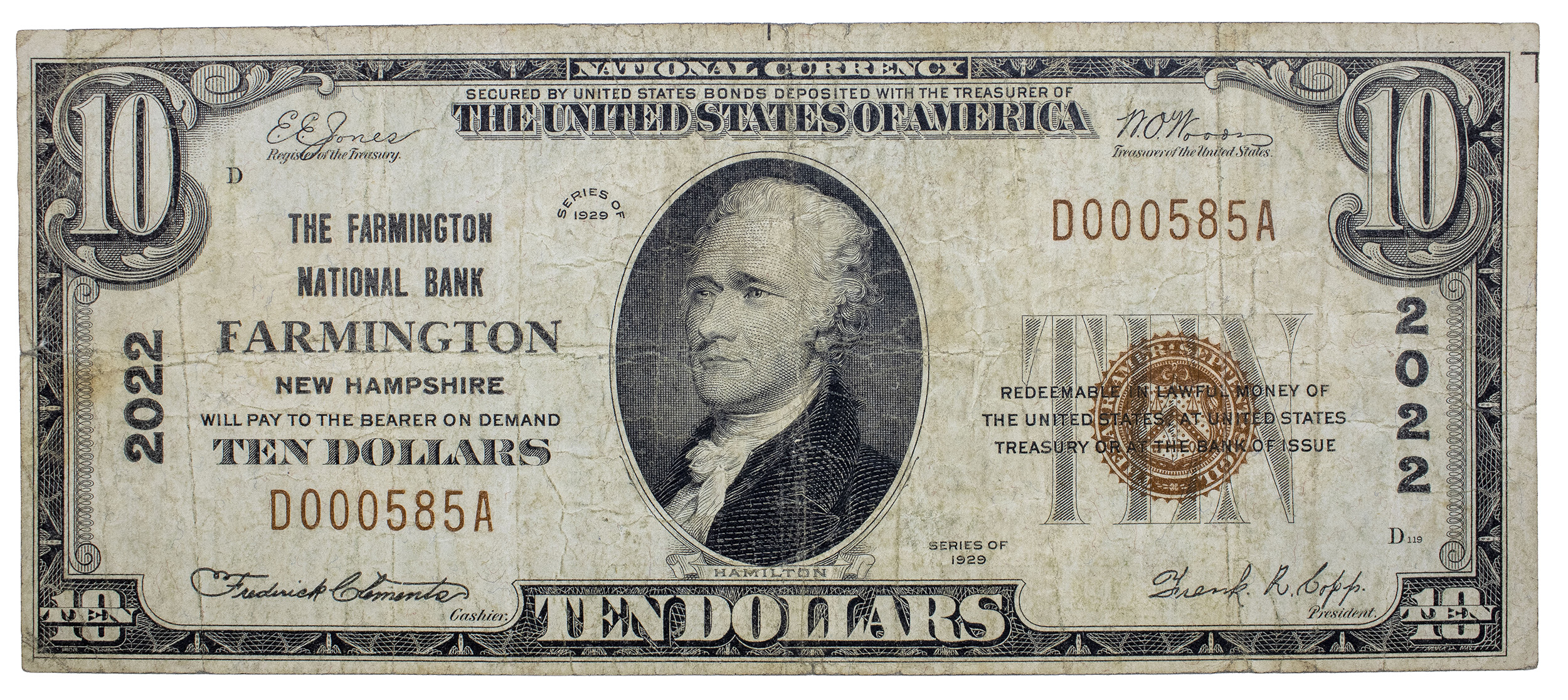 New Hampshire. VF 1929 $10 Note