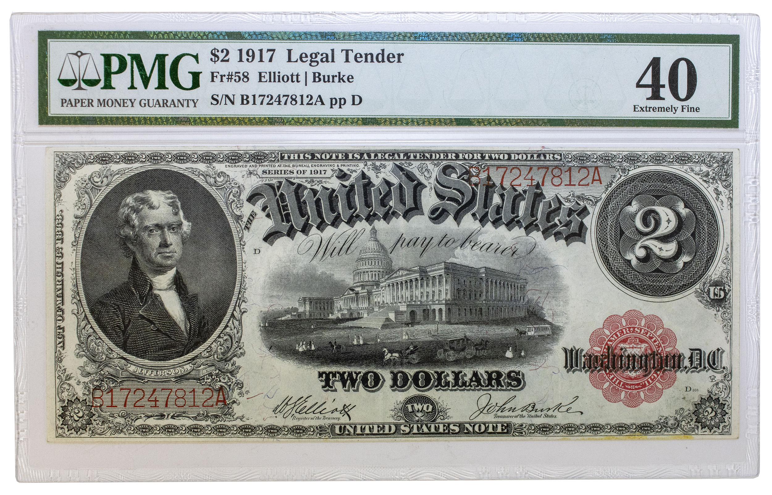 PMG EF-40 1917 Legal Tender $2