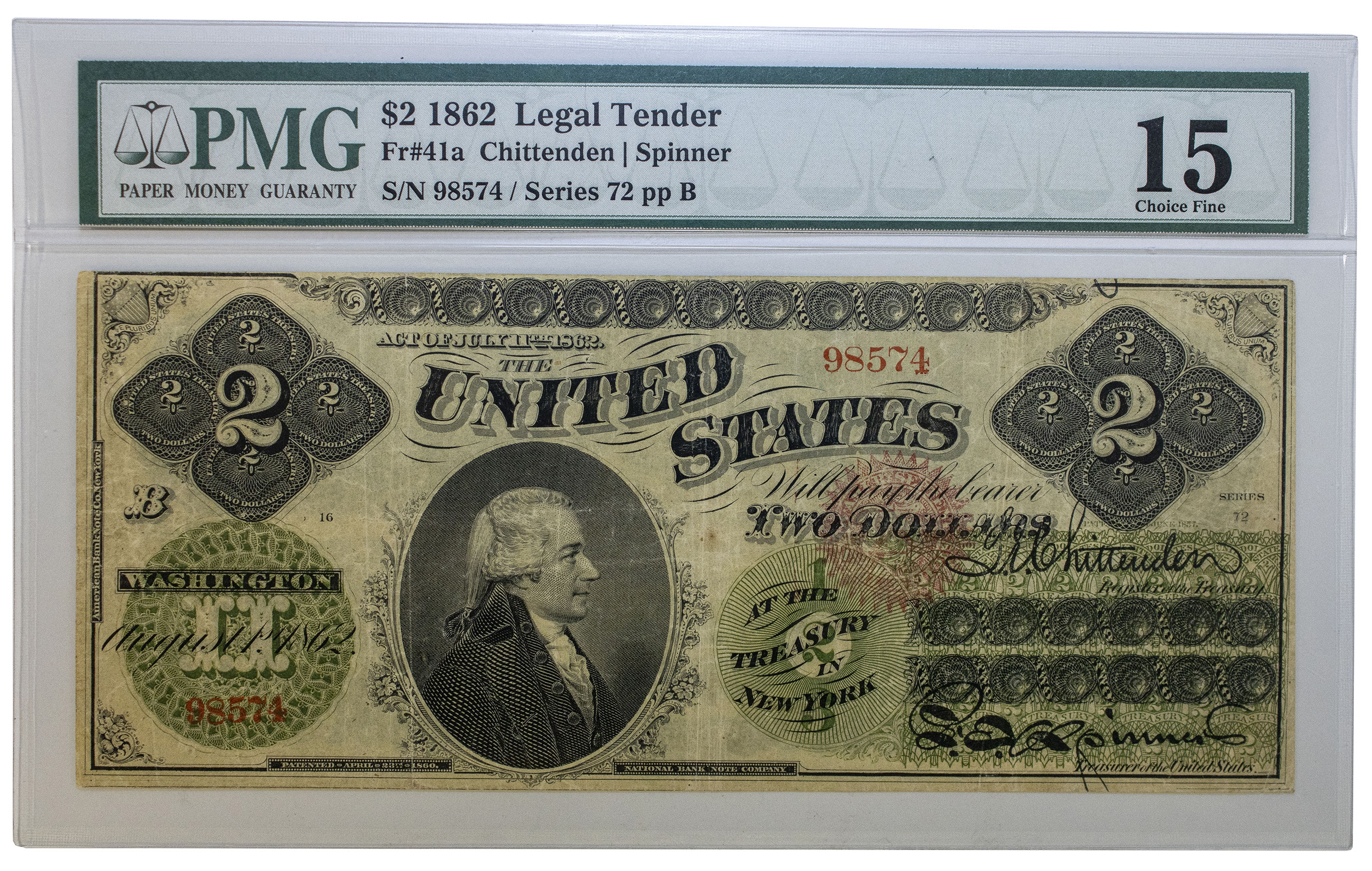 PMG Fine-15 1862 Greenback Legal Tender $2