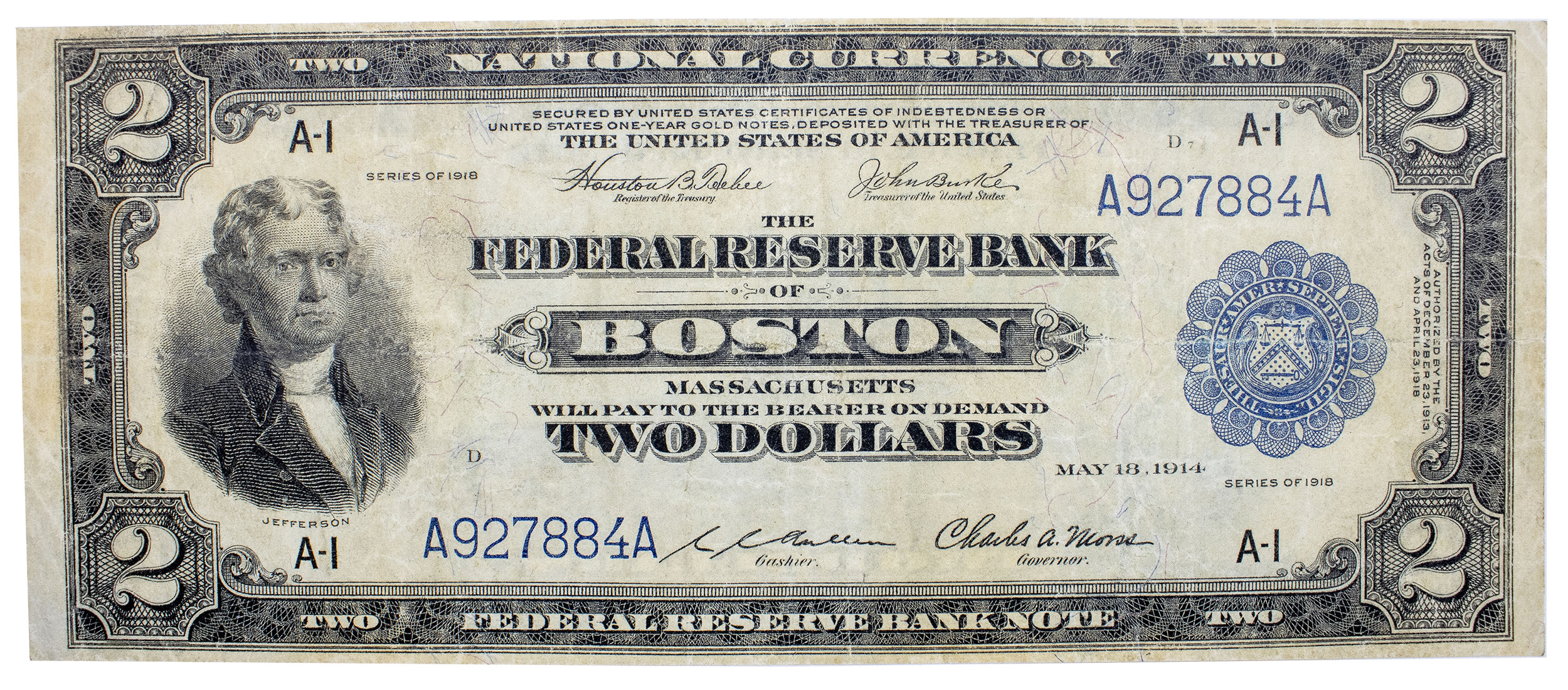 Massachusetts. VF 1918 National Currency $2 Note