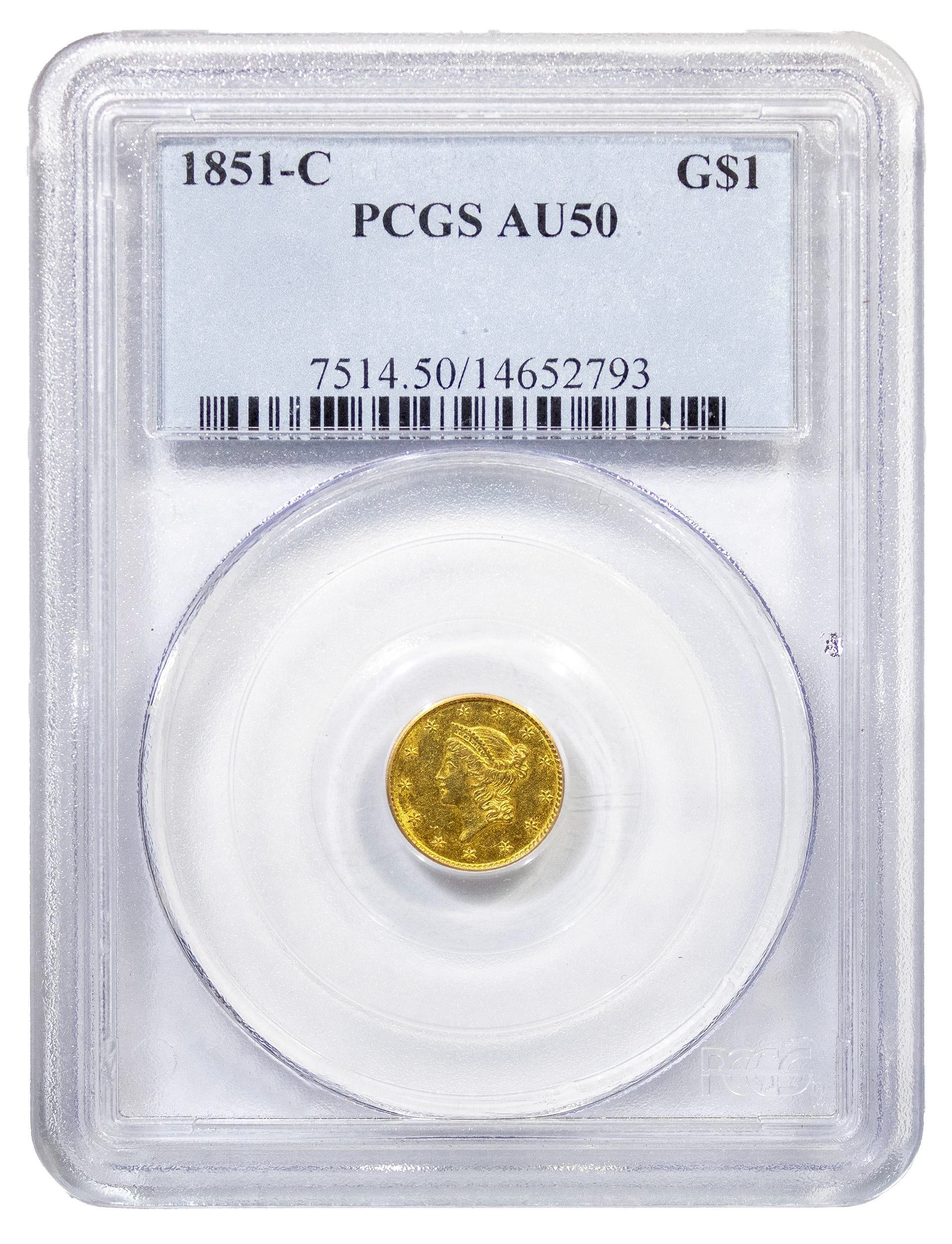 PCGS AU-50 1851-C Gold $1