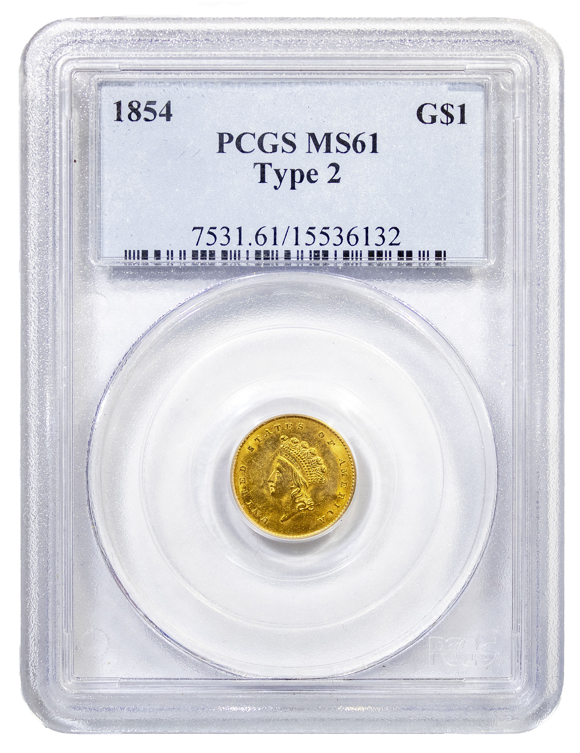 PCGS MS-61 1854 Type II Gold $1