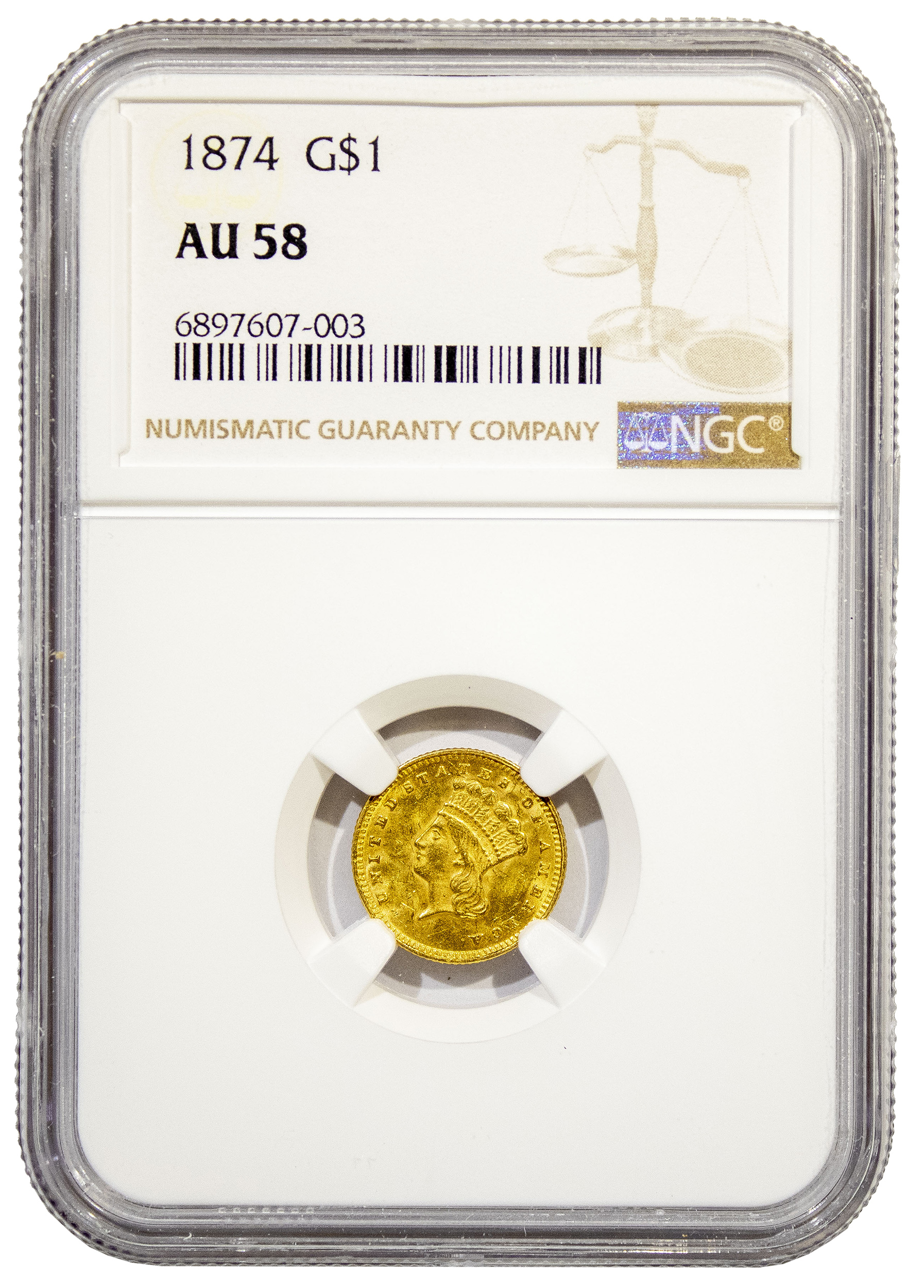 NGC AU-58 1874 Gold $1