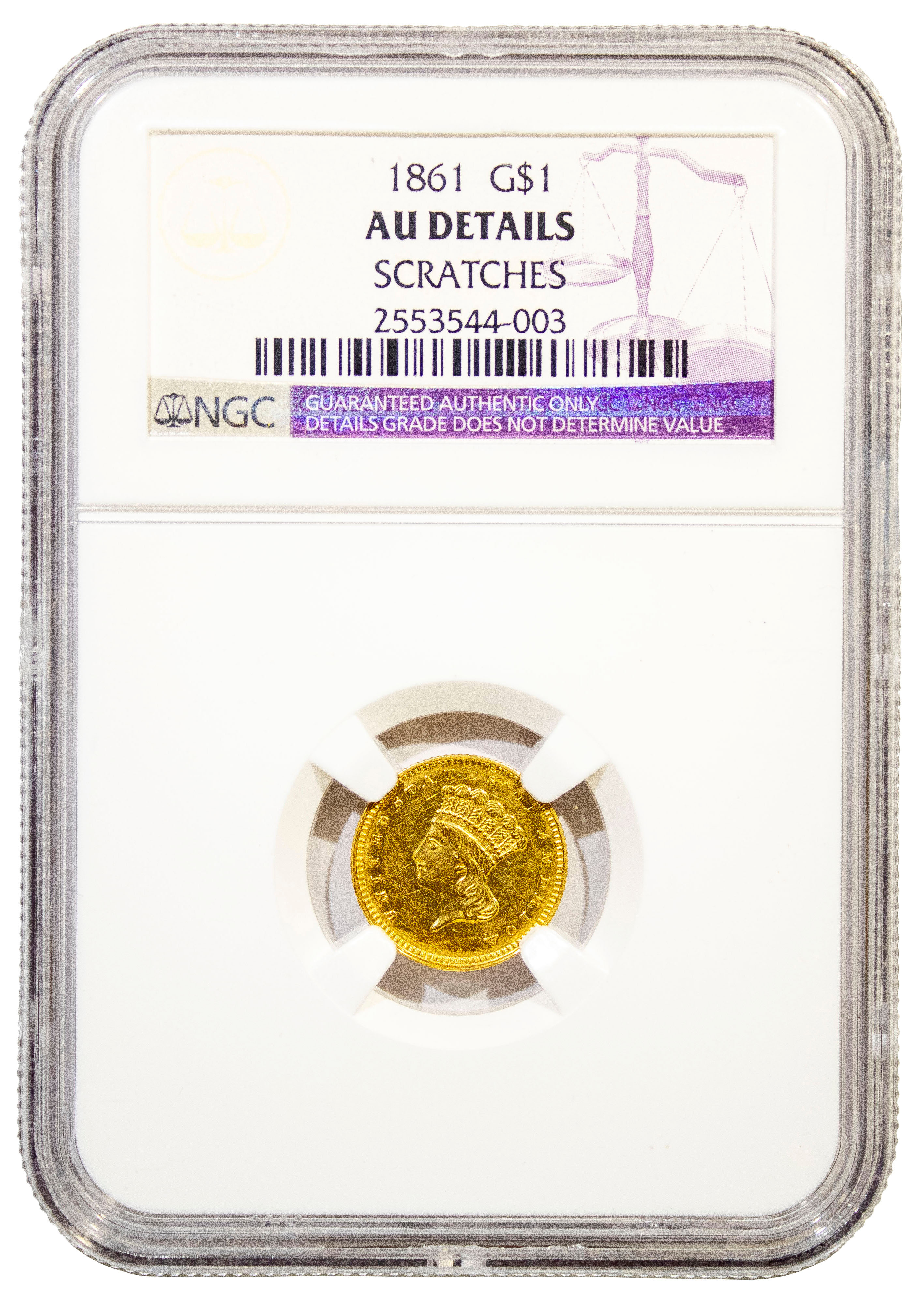 NGC AU Details 1861 Gold $1