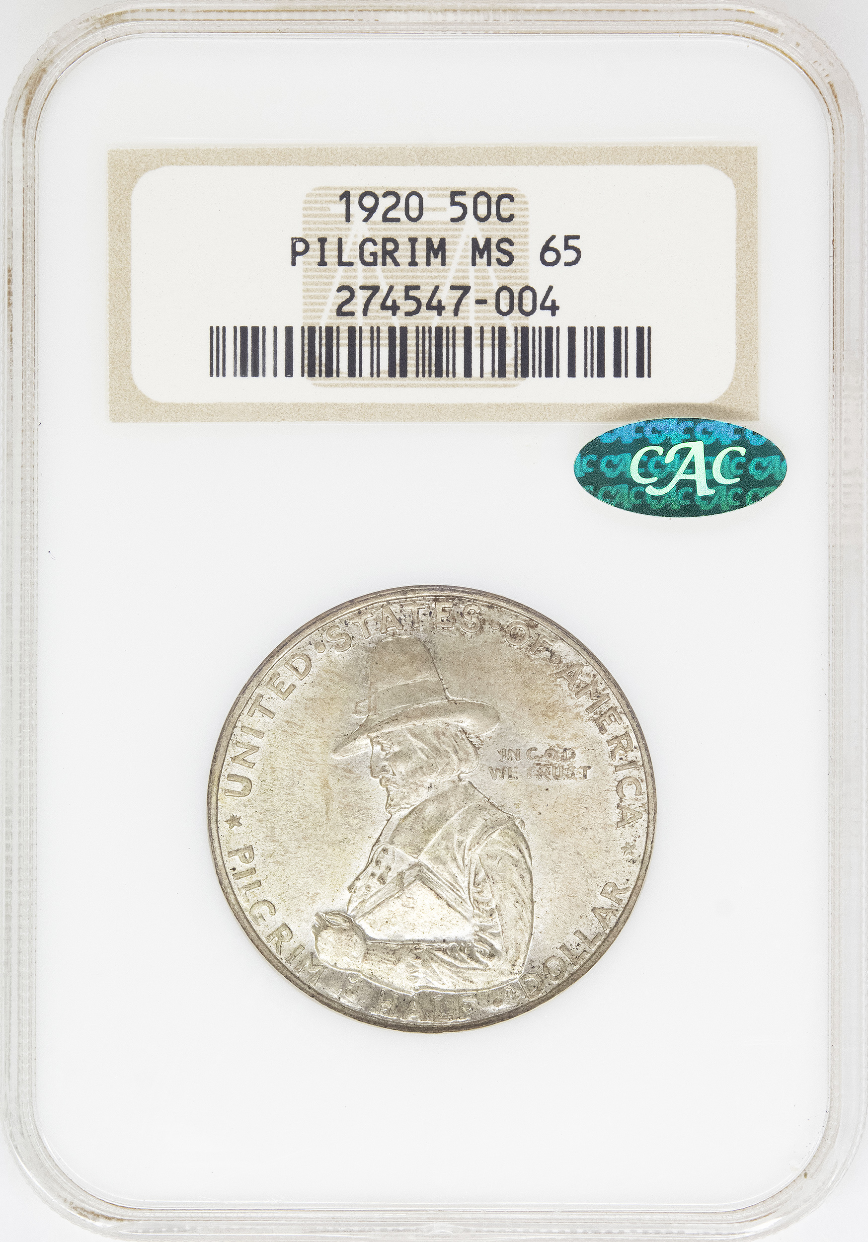 NGC MS-65 CAC 1920 Pilgrim Half Dollar
