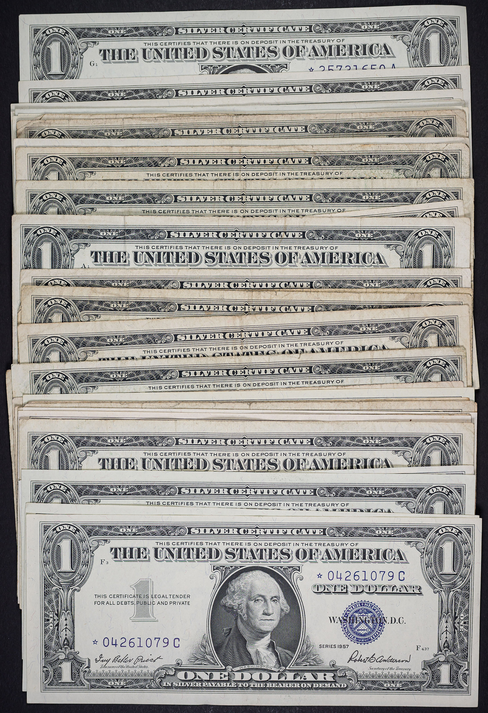 34 Pcs 1935/57 $1 Silver Certificate Star Notes